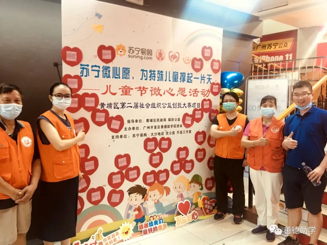 5月30日至6月1日儿童节期间,广州开发区善德助学促进会在苏宁易购大沙地店开展“苏宁微心愿,为特殊儿童撑起一片天——儿童节微心愿活动”,向公众宣传黄埔区第二届公益创投项目“为特殊儿童撑起一片天”,感召社会各界爱心人士共同关注和帮扶特殊儿童,让他们也像正常儿童一样感受生活的美好。本次活动吸引近三百名顾客和路人士参与。
