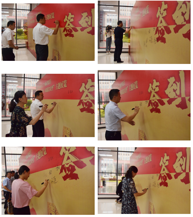 市委办、市档案馆、市档案学会相关领导、县委县政府的领导、县直各单位负责人、新时代文明实践中心壹禄福公益慈善协会志愿服务队的志愿者们一起观看“传承红色基因、决战脱贫攻坚”的宣传墙和宣传片。