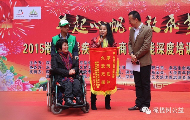 2015年3月8日上午在深圳市龙华新区大浪华宁路颐丰华工业区16栋青年梦中心,由橄榄树残友互助中心主办,点亮生命残疾人艺术团、青年梦中心、三同源文化传播有限公司、拥抱阳光艺术团、深圳狮子会大地服务队等单位联合协办的“2015橄榄树残疾人电子商务技能深度培训首期班开学仪式”在这儿隆重举行。