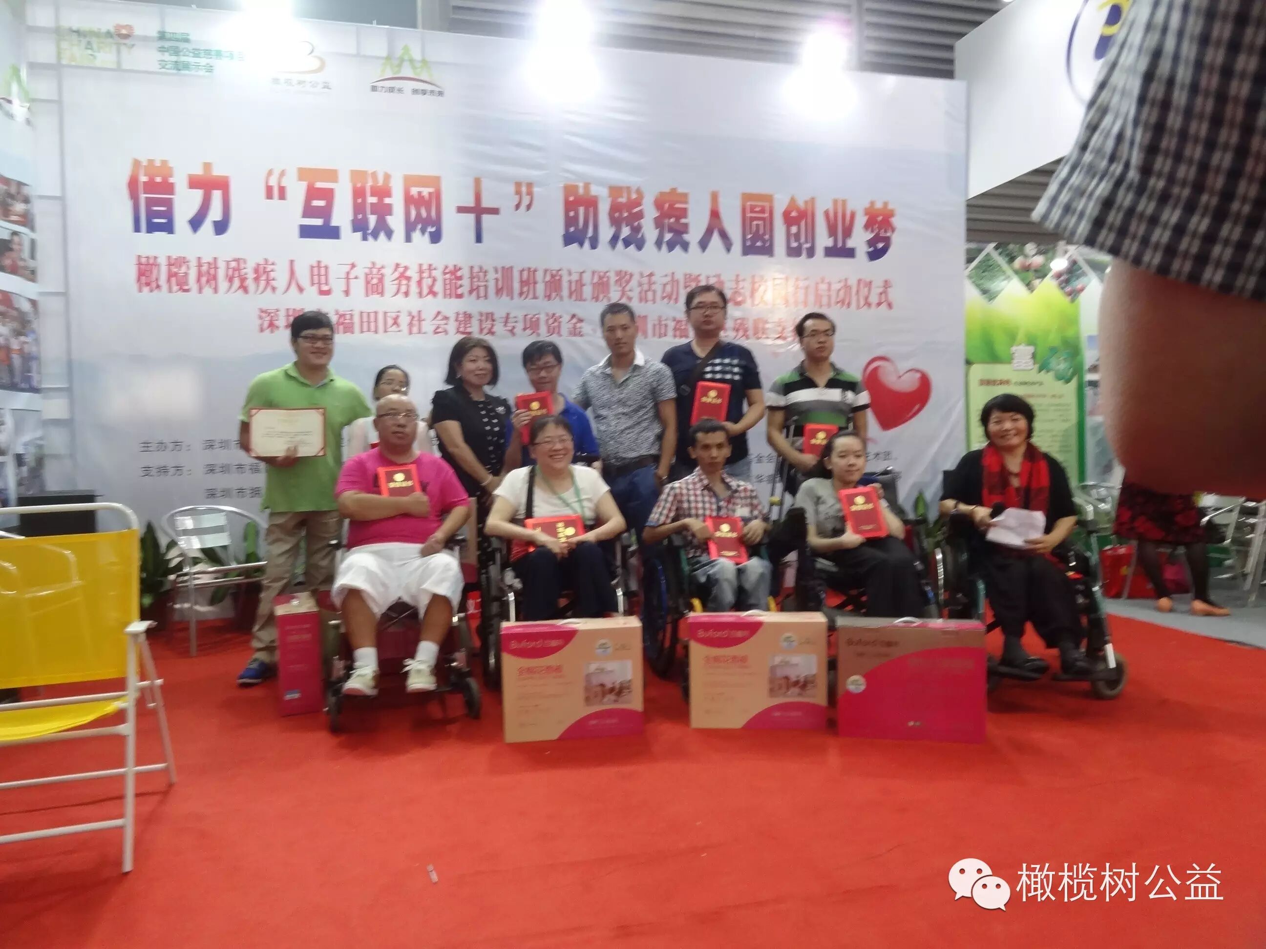 活动并通过第四届慈展会扶贫济困区等五个展示区大屏幕播放了视频短片向人们展示橄榄树电商培训培训学习成果,有勤奋、有努力、有感动更有收获,三期电商微商技能培训给福田区的残疾朋友们带了实实在在的好处,获得了在场参展公益同仁、残友们的一致好评!
