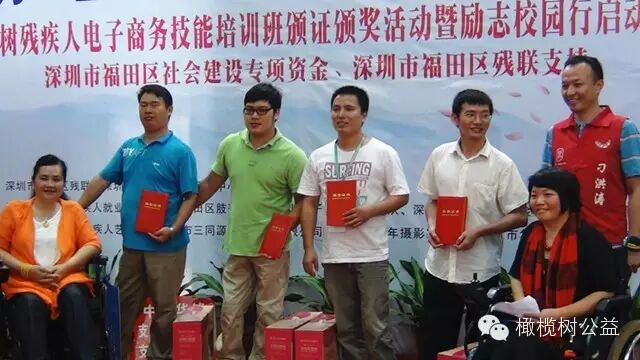 橄榄树总干事于黎介绍说:2015年以来我们响应党中央“大众创业。万众创新”的号召,开展了三期橄榄树残疾人电子商务技能培训班,取得了阶段性的成果,这个项目得了福田区社会发展专项资金的支持,项目是基于肢残人行动不便的特殊情况而设立的实操性电商反能培训。之前在三同源如一老师、知行合一投资教育联盟李尧老师等爱心人士的支持下,经历了近二年的探索实践。真正开始搭建起了这个独特的残疾人电商培育平台。
