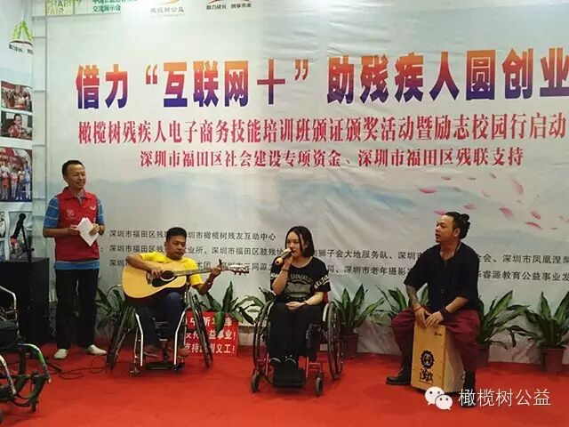 与此同时,主持人刁洪涛宣布:由深圳市宣传文化事业发展专项基金支持的-橄榄树“校园行”残疾人鼓励志巡演项目活动正式开始启动!