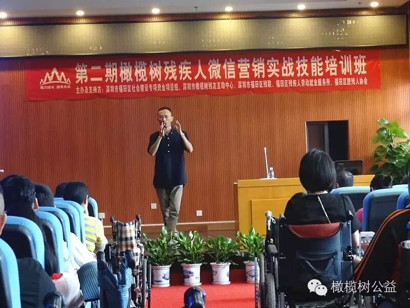 10月25日由深圳市橄榄树残友互助中心主办、福田区残联、福田区残疾人劳动就业服务所、福田区社会建设专项资金共同支持的第二期橄榄树残疾人微信营销实战培训班在深圳市福田区上梅林梅坳七路福田区残联福康之家二楼多功能厅正式开课啦!来自福田豁区的70多位残疾人朋友参加了本次培训,福田区肢残人协会巫妙春主席、福田区残疾人劳动就业服务所黄老师等到场为残友们提供了热情周到的服务支持。