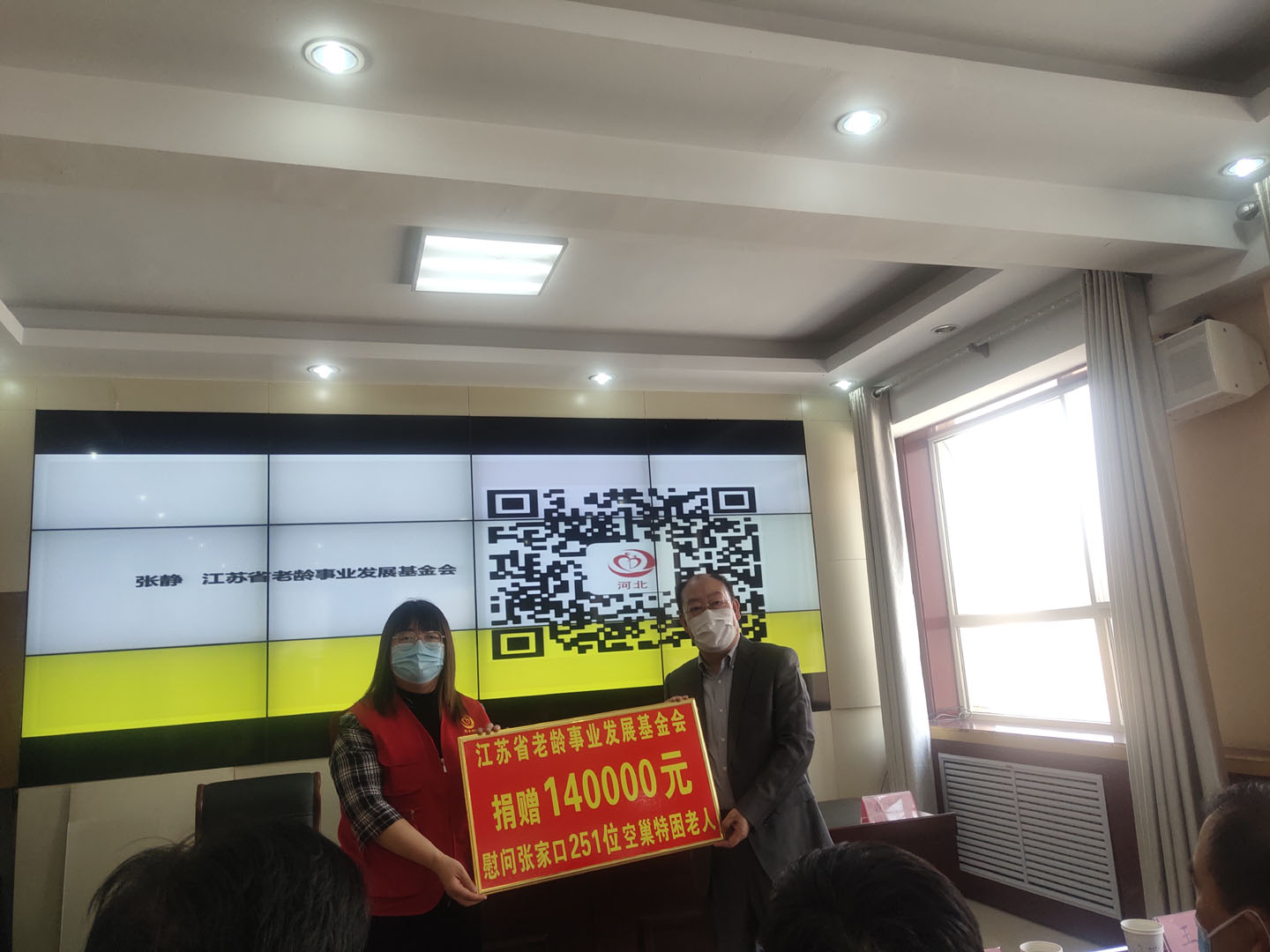 2020年4月14日,由江苏省老龄事业发展基金会主办,张家口秉德社会工作发展中心等10家组织联合承办的今年第一场大型助老公益活动“温情暖河北,有爱不孤单”空巢老人救助活动张家口启动仪式在张家口市桥西区东窑子镇政府举行。