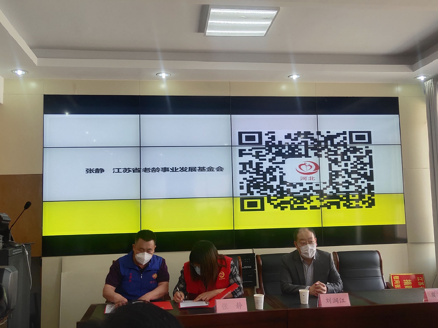 启动仪式上江苏省老龄事业发展基金会河北项目负责人张静为张家口市进行捐赠,市民政局调研员刘润江代表张家口接受了捐赠牌。执行机构代表张家口秉德社会工作发展中心总干事李军代表执行机构签署了执行条约,并代表志愿者讲话。