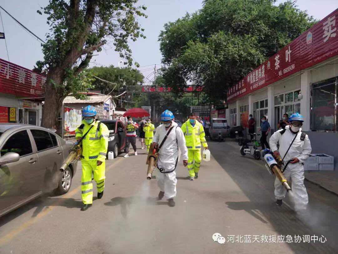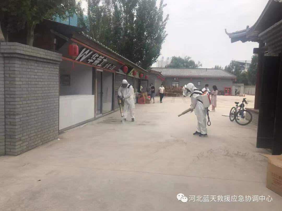 1、保定蓝天救援队4车9人,到涞水县野三坡景区进行防疫消杀,消杀面积30000平方米。(已结束)
