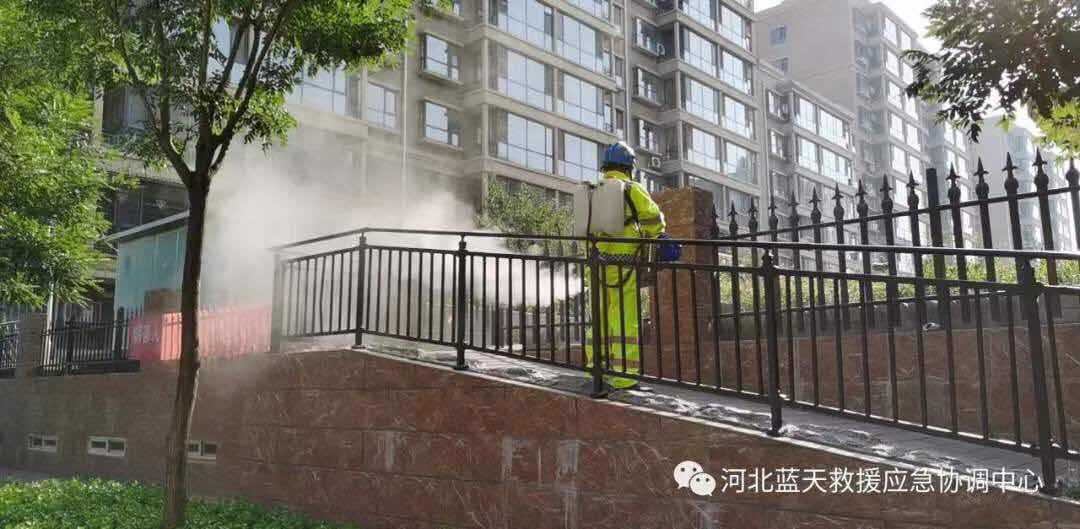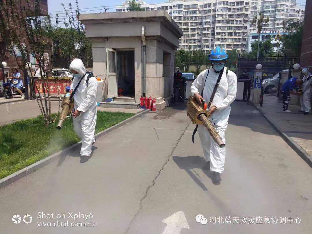 23、保定蓝天救援队2车12人,协助保定市卫健委对某小区进行紧急消杀,消杀面积20000多平方米。(已结束)