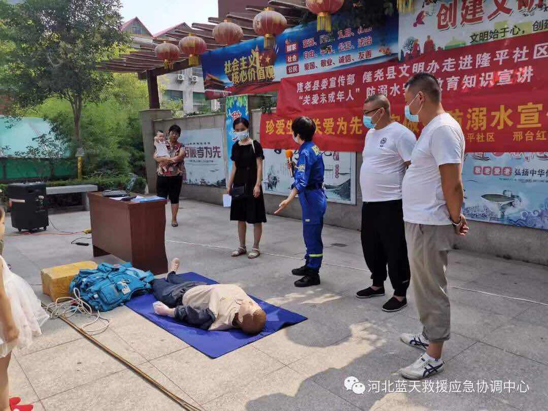 9、邢台市红十字蓝天救援队2车4人,到隆尧隆平社区在祥和居开展防溺水宣讲活动。(已结束)