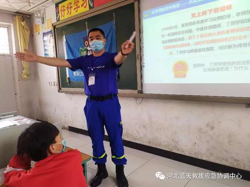 5、张家口蓝天救援队2车6人,到蔚县柏树乡中心学校进行防溺水知识宣讲。(已结束)