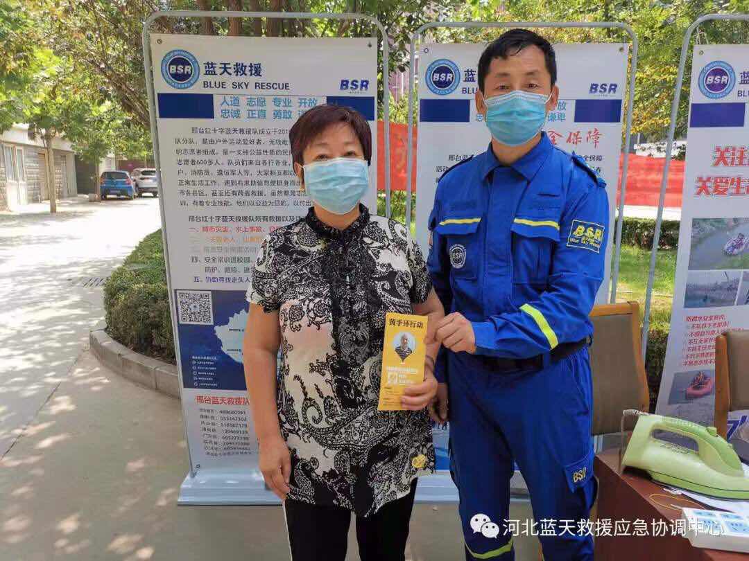 8、唐山蓝天救援队3车8人,到唐山抗震纪念碑广场前参加唐山市第19个全国“安全生产月”宣传活动,现场宣传了安全生产资料,并为有需求的群众免费发放了防走失黄手环6条。(已结束)