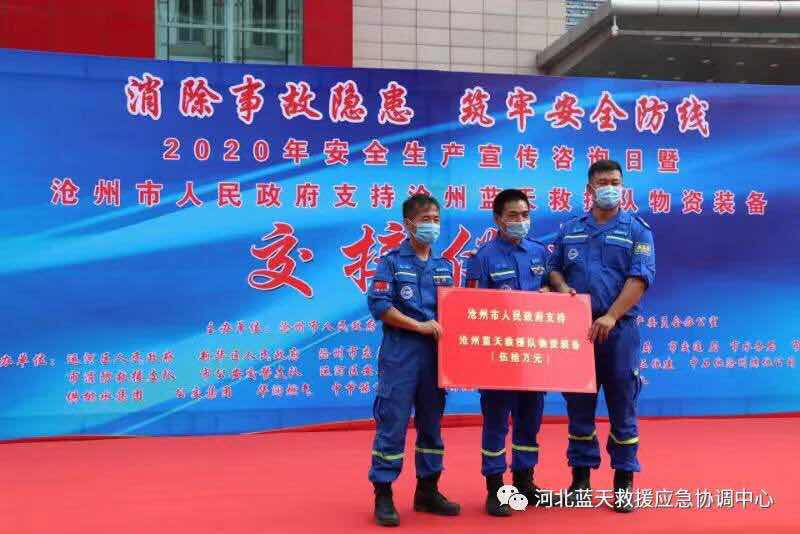 1、沧州红十字蓝天救援队13车36人,到沧州市运河区华北商厦参加由沧州市人民政府主办,沧州市安全委员会办公室承办的“消除事故隐患 筑牢安全防线”2020年安全生产宣传咨询日暨沧州市人民政府支持沧州蓝天救援队物资装备交接仪式活动。(已结束)