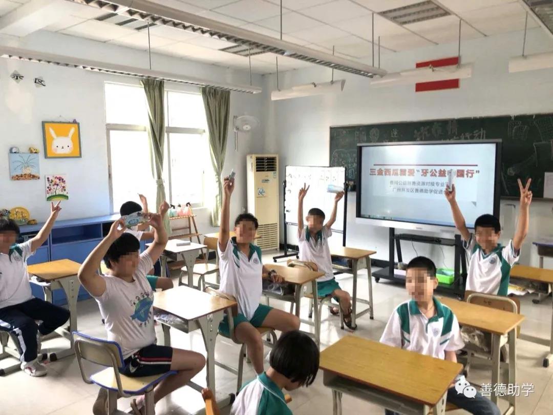 随后,老师给每位同学们分发爱牙保健品——三金西瓜霜乳牙宝儿童牙膏,课堂上随即响起了清脆无暇的欢笑声。