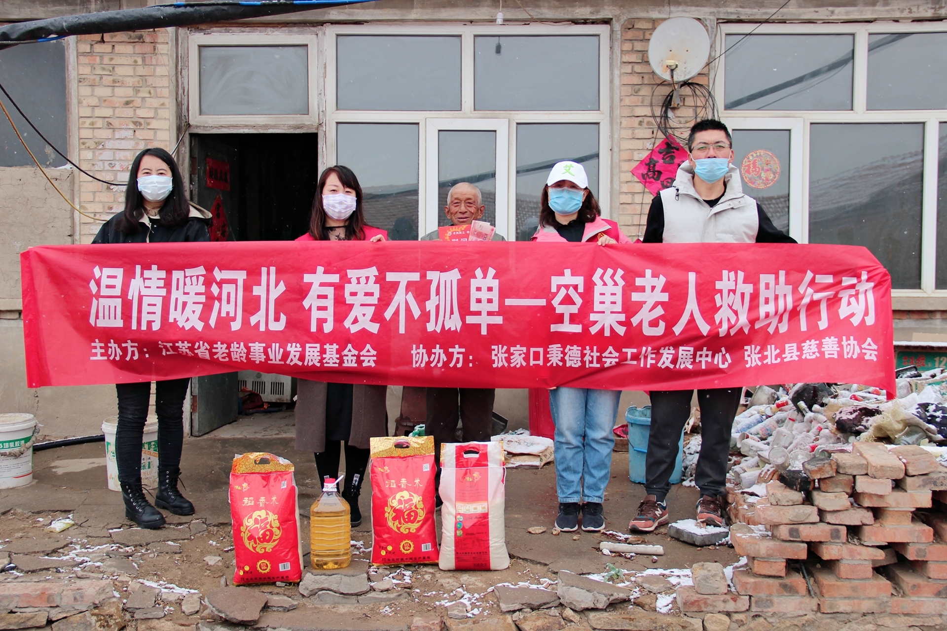 2020年4月16日,由江苏省老龄事业发展基金会主办,张家口秉德社会工作发展中心、张北县慈善协会等10家组织联合承办的大型助老公益活动“温情暖河北,有爱不孤单”空巢老人救助活动走进张北县。
