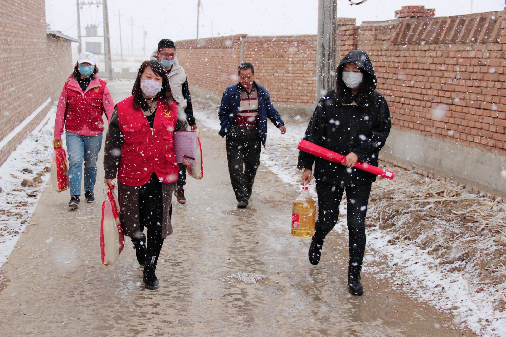 张北县属坝上高寒地区,虽是暮春时节,但活动当天气温较低,还遇上下雪,张北县慈善协会的5名志愿者代表冒着时不时飘落的雪,谨慎的开着车,先慰问了分散于张北县馒头营乡馒头营行政村、郝家营乡五福堂行政村、郝家营乡膳房子行政村火烧营村、公会镇梁家村行政村白家营村、郝家营乡玉带湾村的6位空巢老人,为每位老人送去三袋大米(每袋十公斤)、一桶食用油(5升)及300元现金。预计本周末再慰问14位老人。