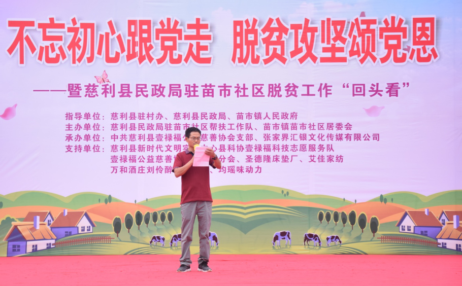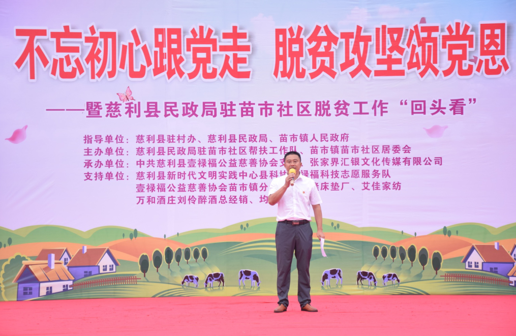 2020年7月16日,“不忘初心跟党走,脱贫攻坚颂党恩”暨慈利县民政局驻苗市社区脱贫工作“回头看”活动在苗市社区居委会广场上举行。