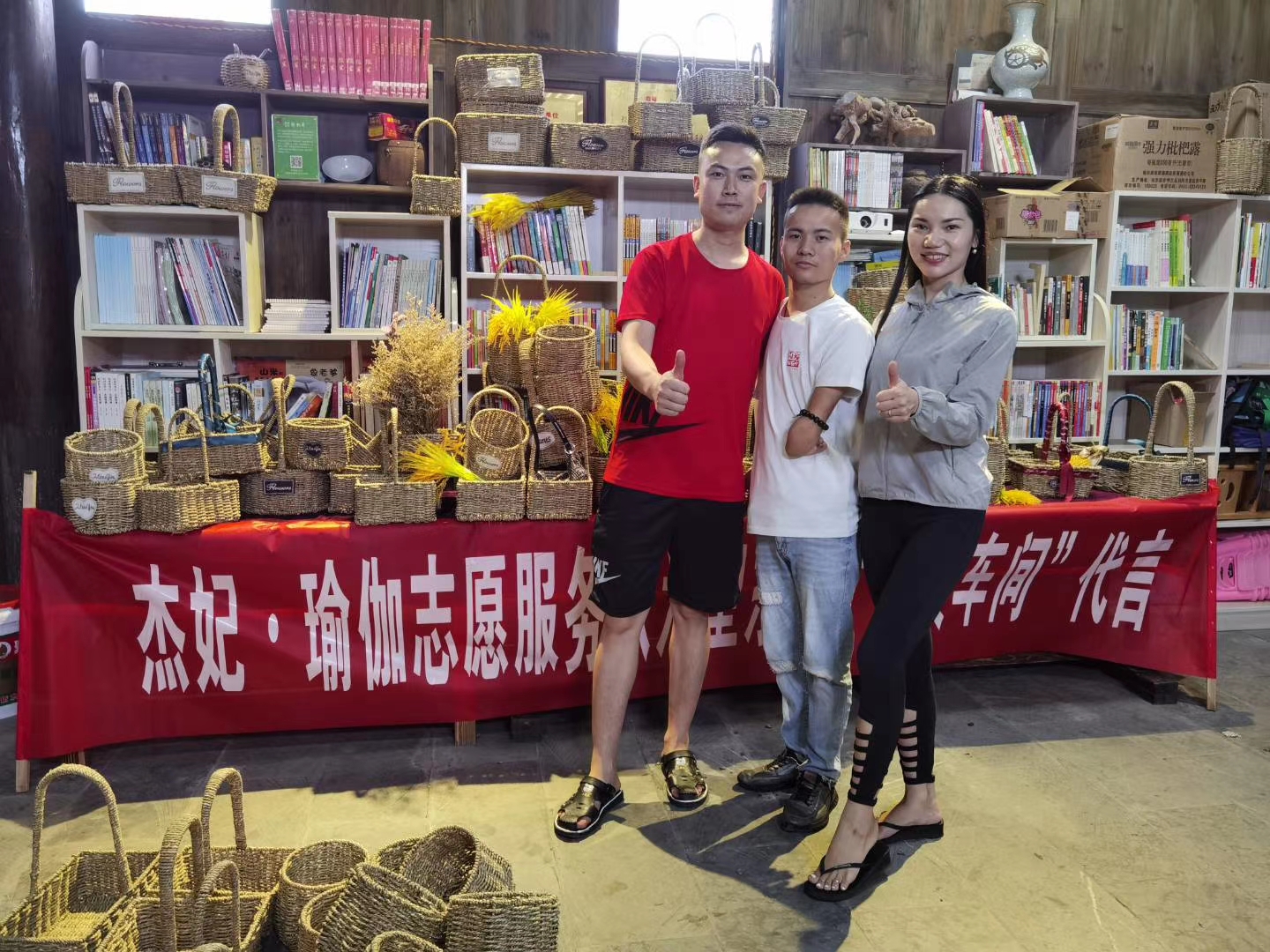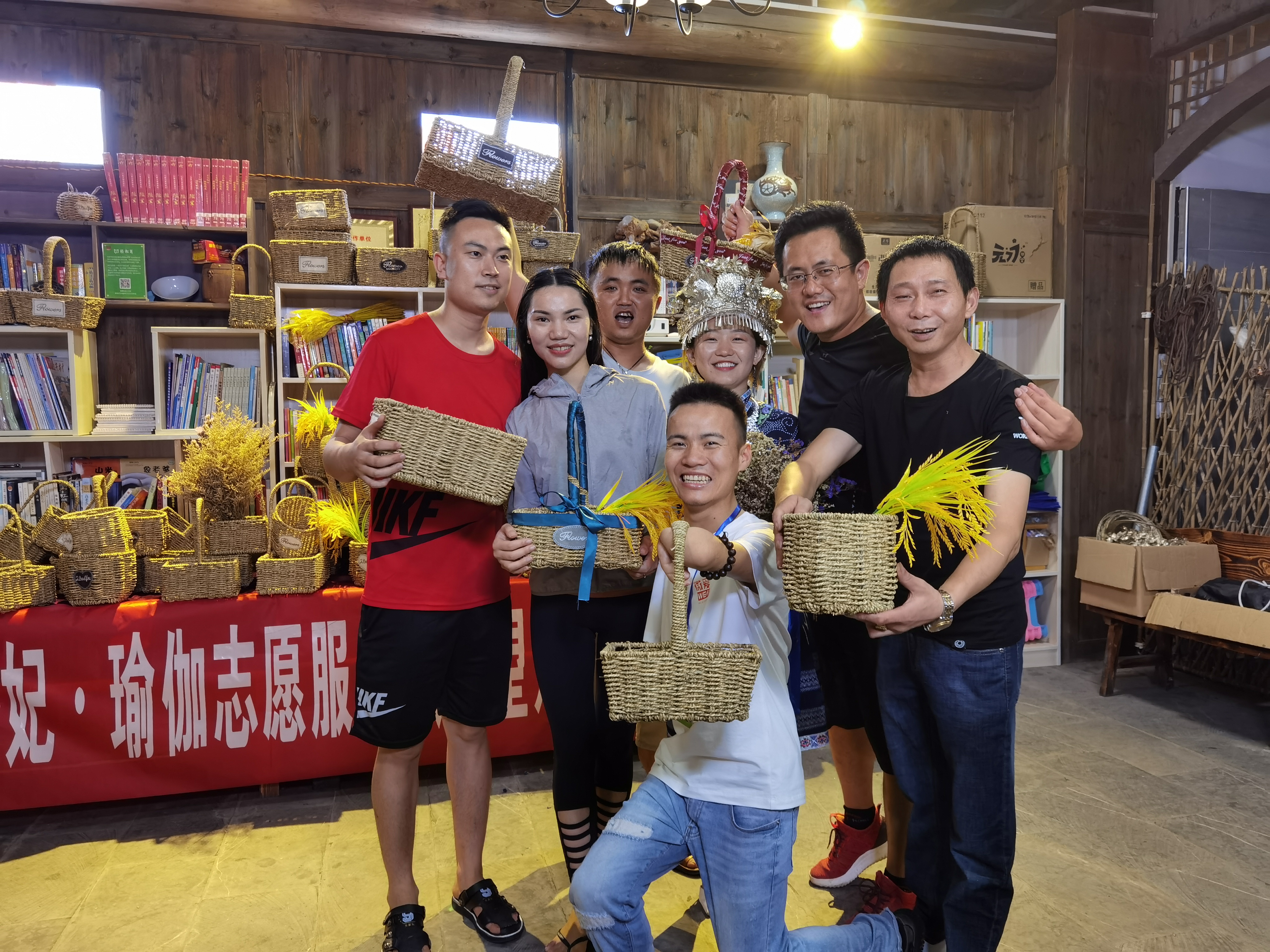 此次活动邀请到中国五四青年奖章获得者,湖南好人,怀化市道德模范罗小小,杰妃.瑜伽王老师,慧慧老师现场展示精彩的双人瑜伽义演,微爱志愿者协会副秘书长小榕儿,在抖音号“追梦人罗小小”和“韵怡居”直播间同步直播,及线下售卖,运用好网联互+线上线下,助力贫脱攻坚,为村民村增收,乡村振兴,奉献一份力量!直播现场观众人数达1250多人,气氛热烈,好评不断。线下购买创意草编蓝的朋友也络绎不绝,当场售出40多个草编蓝!