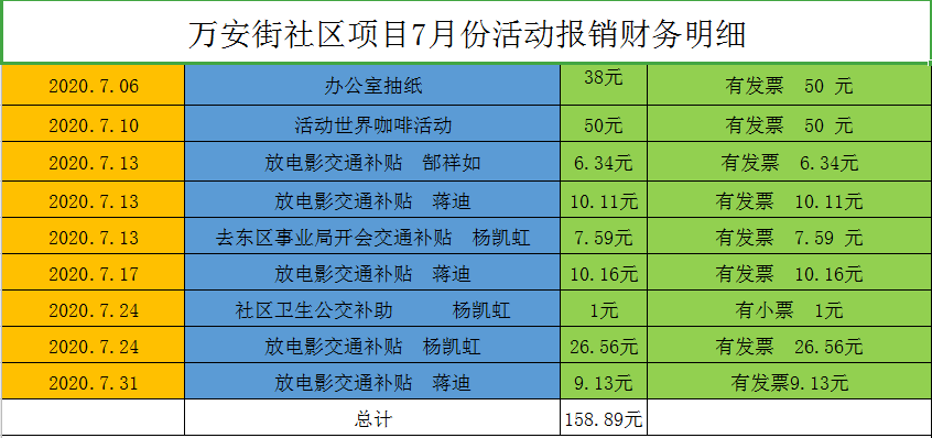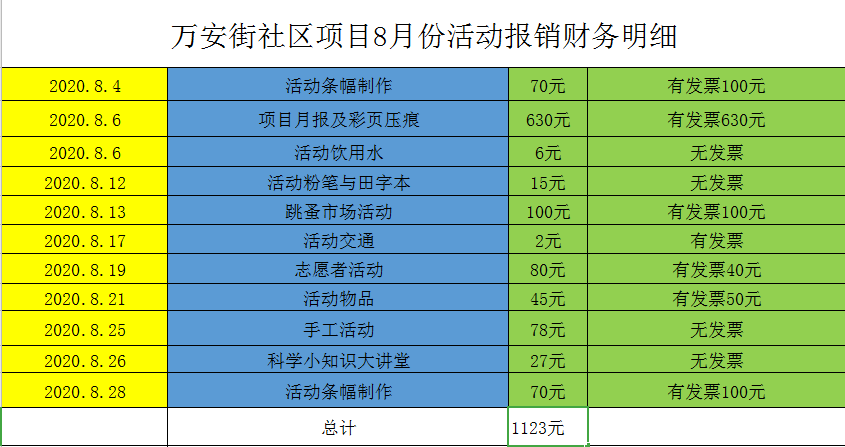 2020年万安街社区党群服务中心6、7、8月份财务公示