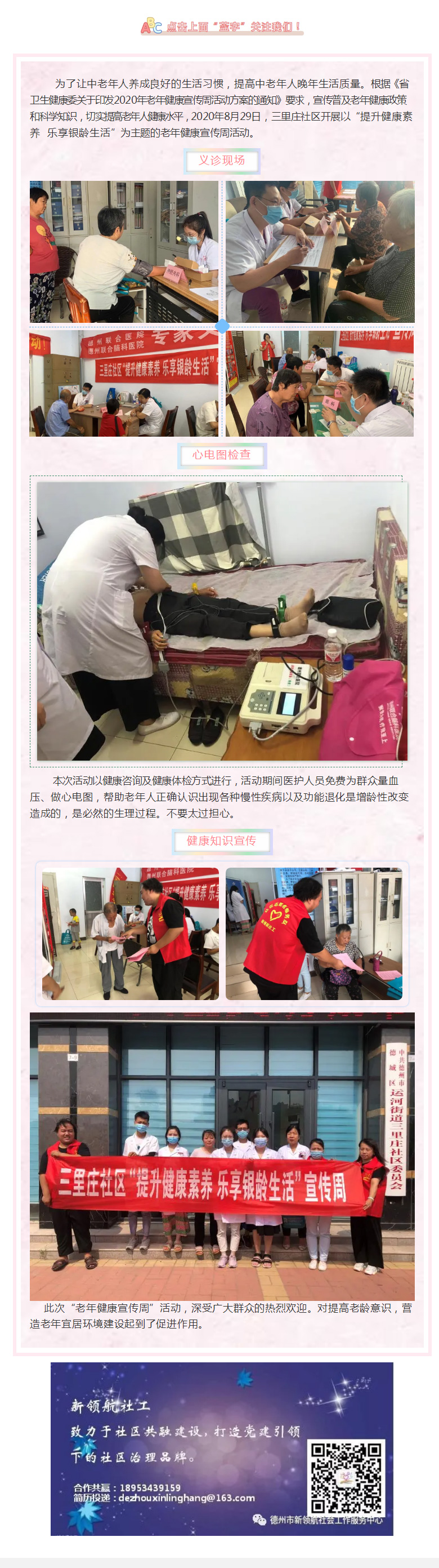 【三里庄社区】“提升健康素养 乐享银龄生活”老年健康宣传周活动主题