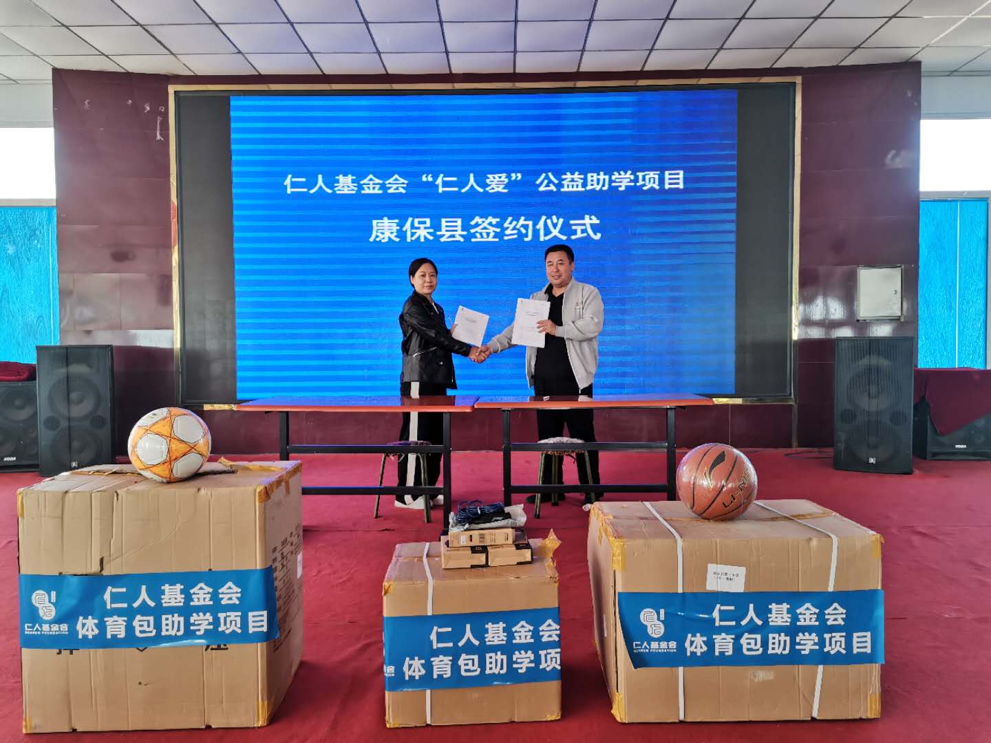北京仁人公益基金会“仁人爱”体育包公益项目落地康保,项目签约仪式于9月14日在康保县举行。北京仁人公益基金会秘书长刘冰、理事李鹏、行政专员谢晓敏,康保县民政局副局长张玉杰,康保县第三中学校长及各中小学校长,张家口秉德社会工作发展中心总干事李军出席签约仪式。