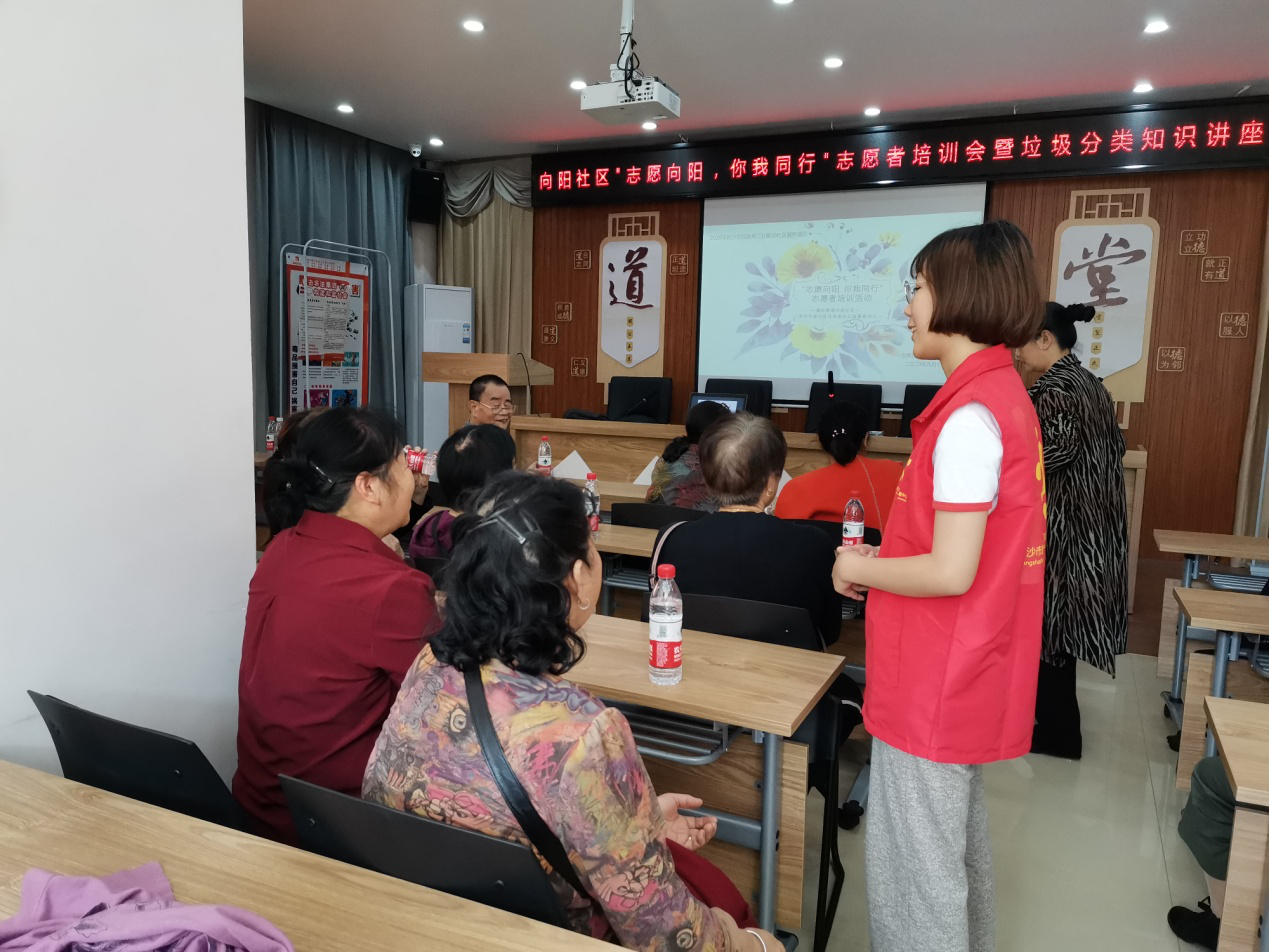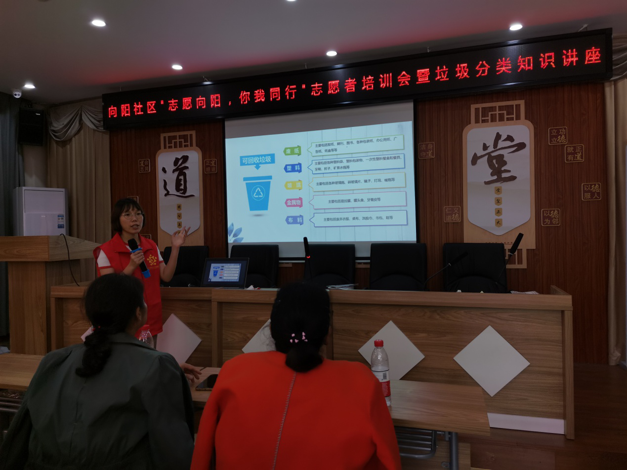 为帮助志愿者加深对志愿精神的理解和志愿服务工作的认识,增强志愿者垃圾分类意识。9月18日下午,在长沙市民政局的支持下,麓谷街道向阳社区联动长沙市壹社区社会组织公益服务中心举办了一场“志愿向阳,你我同行 ”志愿者培训会暨垃圾分类知识讲座,30余名志愿者齐聚一堂,共同学习志愿服务基础知识和垃圾分类知识等。