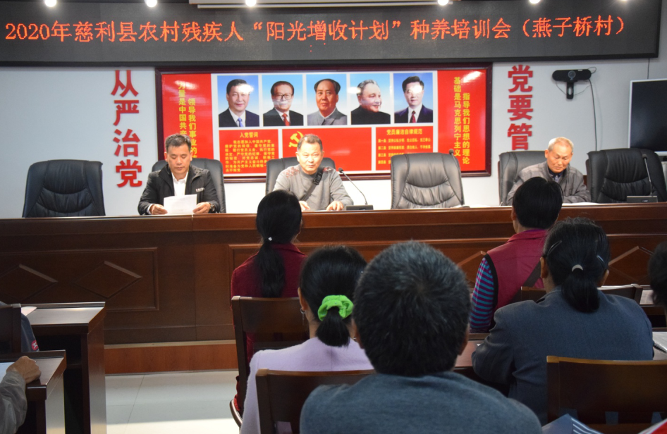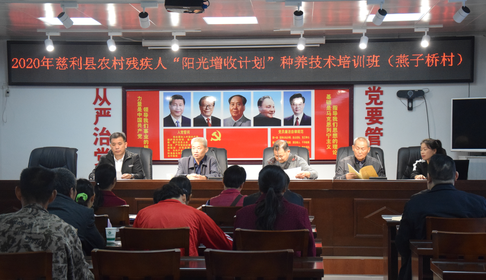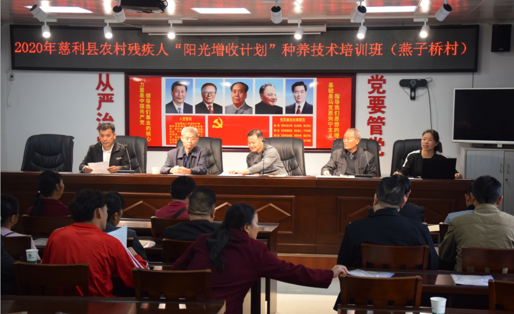 2020年9月25日,慈利县残联联合张家界汇银文化传媒有限公司针对大家的需求,在零溪镇燕子桥村党员活动室给有培训需求的25名建档立卡户和贫困残疾人开展了第三期“阳光增收计划”培训班,特别邀请种植专家李伯和、养殖专家李国柱来授课。