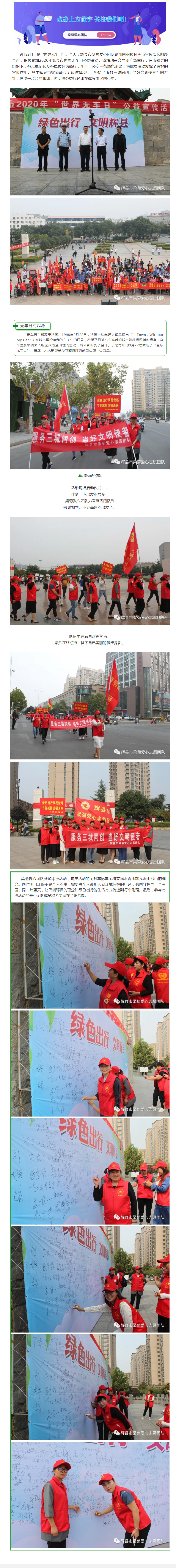 辉县市梁菊爱心团队积极参与世界无车日活动!