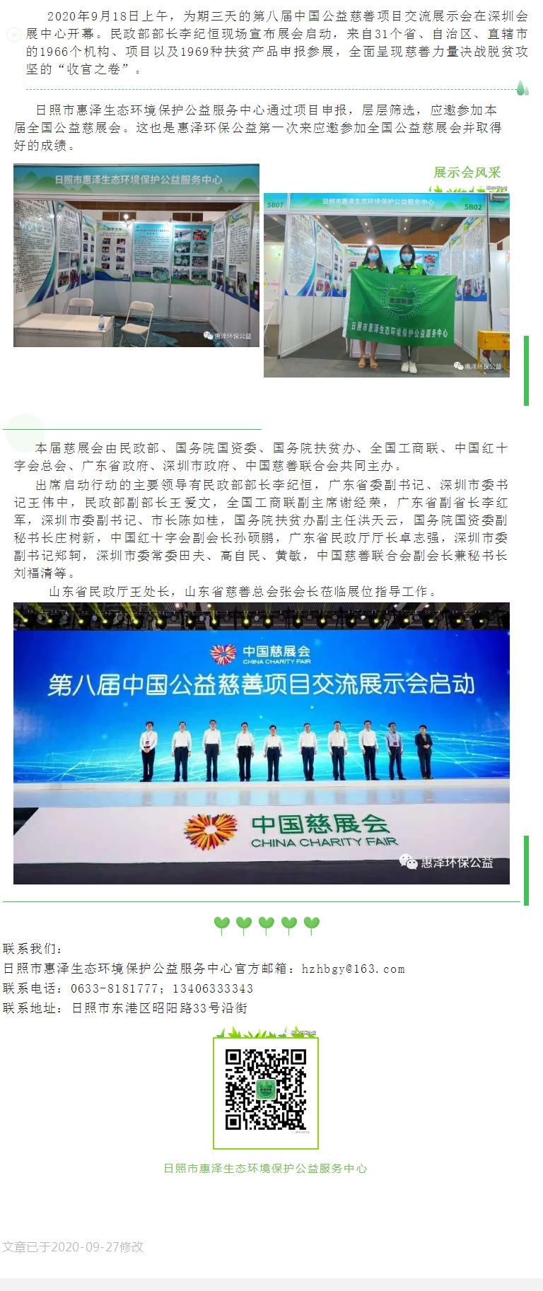 日照市惠泽生态环境保护公益服务中心应邀参加中国公益慈善项目交流展示会