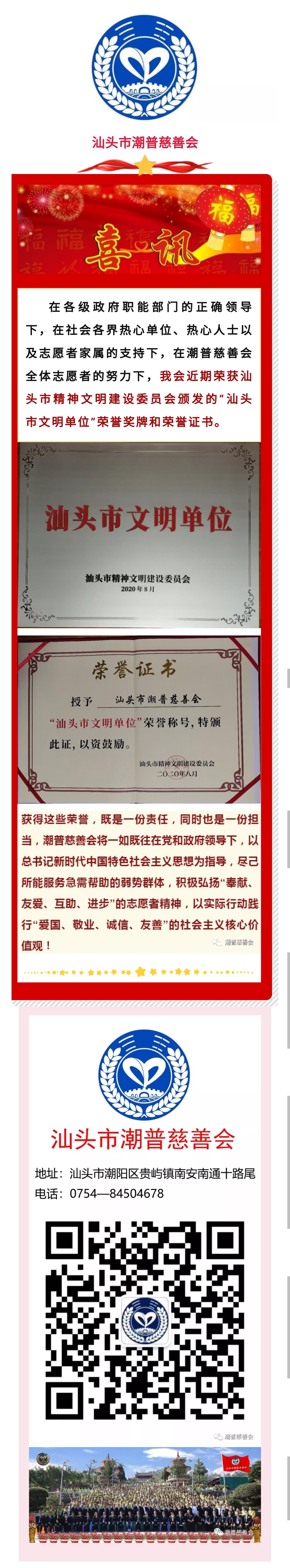 热烈祝贺潮普慈善会荣获“汕头市文明单位”殊荣