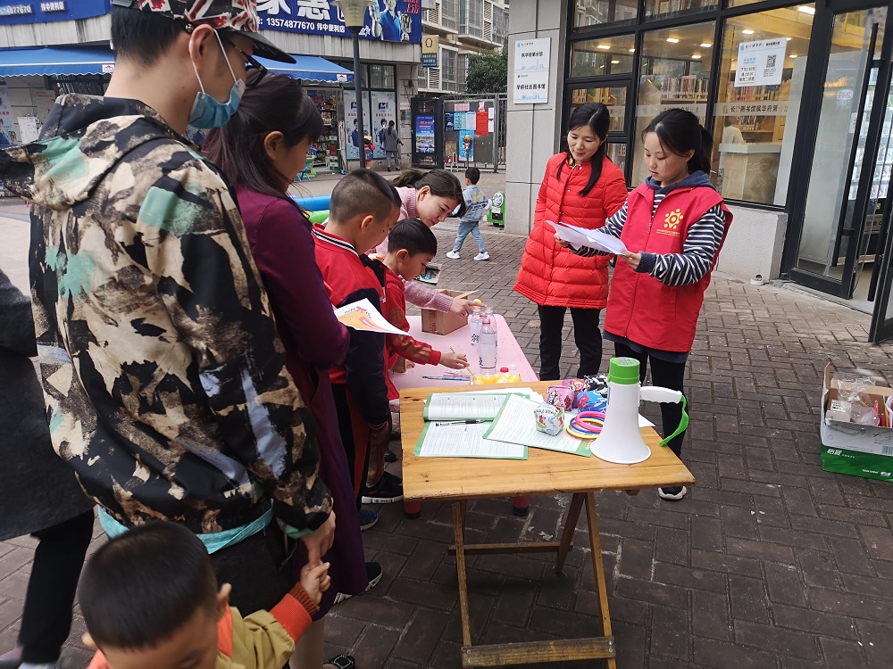 此次活动共安排了“垃圾分类精准投、垃圾分类考考你、疯狂找茬、垃圾运送我能行”四个游戏关卡,每一位参与活动的居民需要在签到处领取一张游园任务卡,每通过一个游戏可加盖一个过关印章,集满四个印章后,可在活动签到台兑换纪念品。趣味横生又意义十足的垃圾分类游戏,让蠢蠢欲动的居民纷纷投入其中,对于他们来说,在活动中除了可以学习垃圾分类知识,体验游戏带来的欢乐,还能领取可爱的纪念品,可谓是“一举三得”。另一头,社工及志愿者穿梭于人群中,与参与活动的居民互动,发放《长沙市生活垃圾管理条例》宣传手册,让垃圾分类知识法规深入人心。