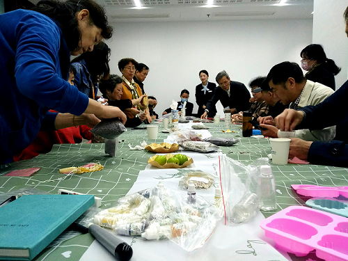 活动开始,社工先通过讲解PPT的形式向大家简单介绍了香囊的功效及若干种香囊配方,让居民们大致了解有关香囊的小知识。接着,社工向居民们详细讲解并示范了制作香囊的步骤和注意事项,大家纷纷挑选自己心仪的材料开始香囊DIY之旅。居民们将香料装入白色纱布袋,再将纱布袋装进香囊袋中,抽好抽绳,略微调整一下形态,一个韵味悠长的香囊就制作完成了。大家的香囊各不相同,有用艾草填充的,有用薰衣草、桂花、迷迭香或玫瑰花填充的,还有混合了若干种香料一起填充的,大家互相交流分享,场面热烈。