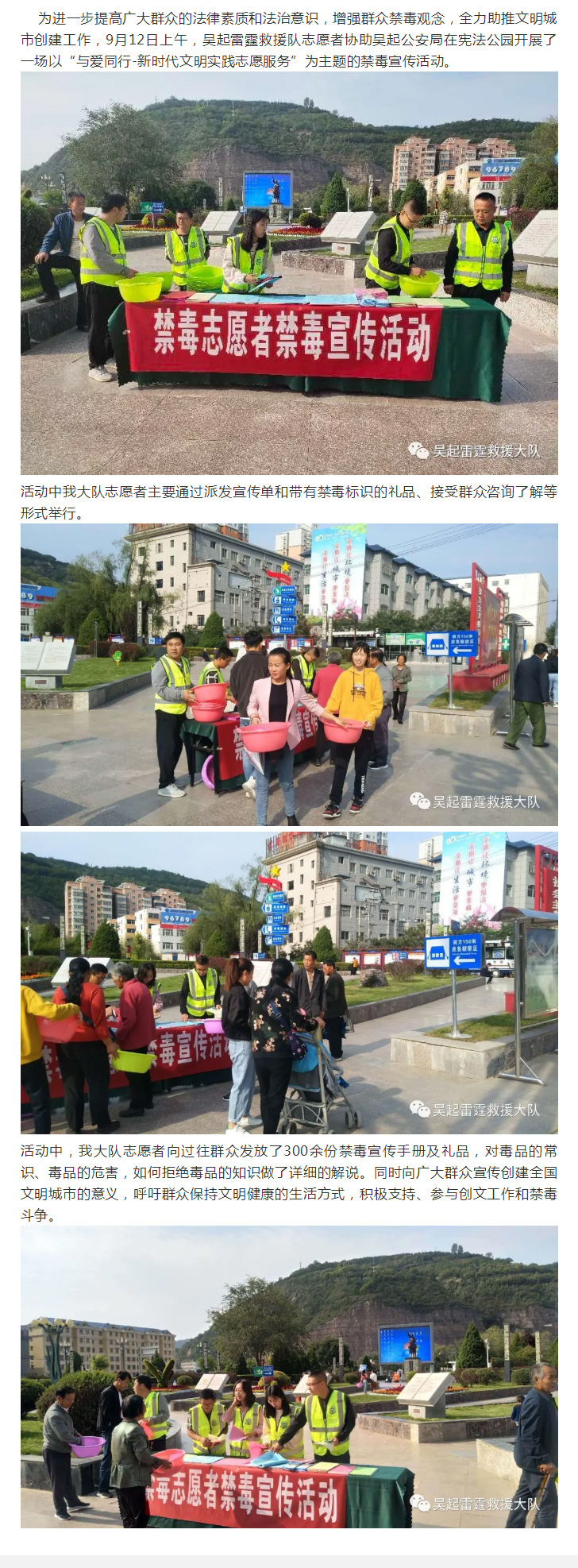 吴起雷霆救援队志愿者协助公安进行禁毒宣传 助力创文工作
