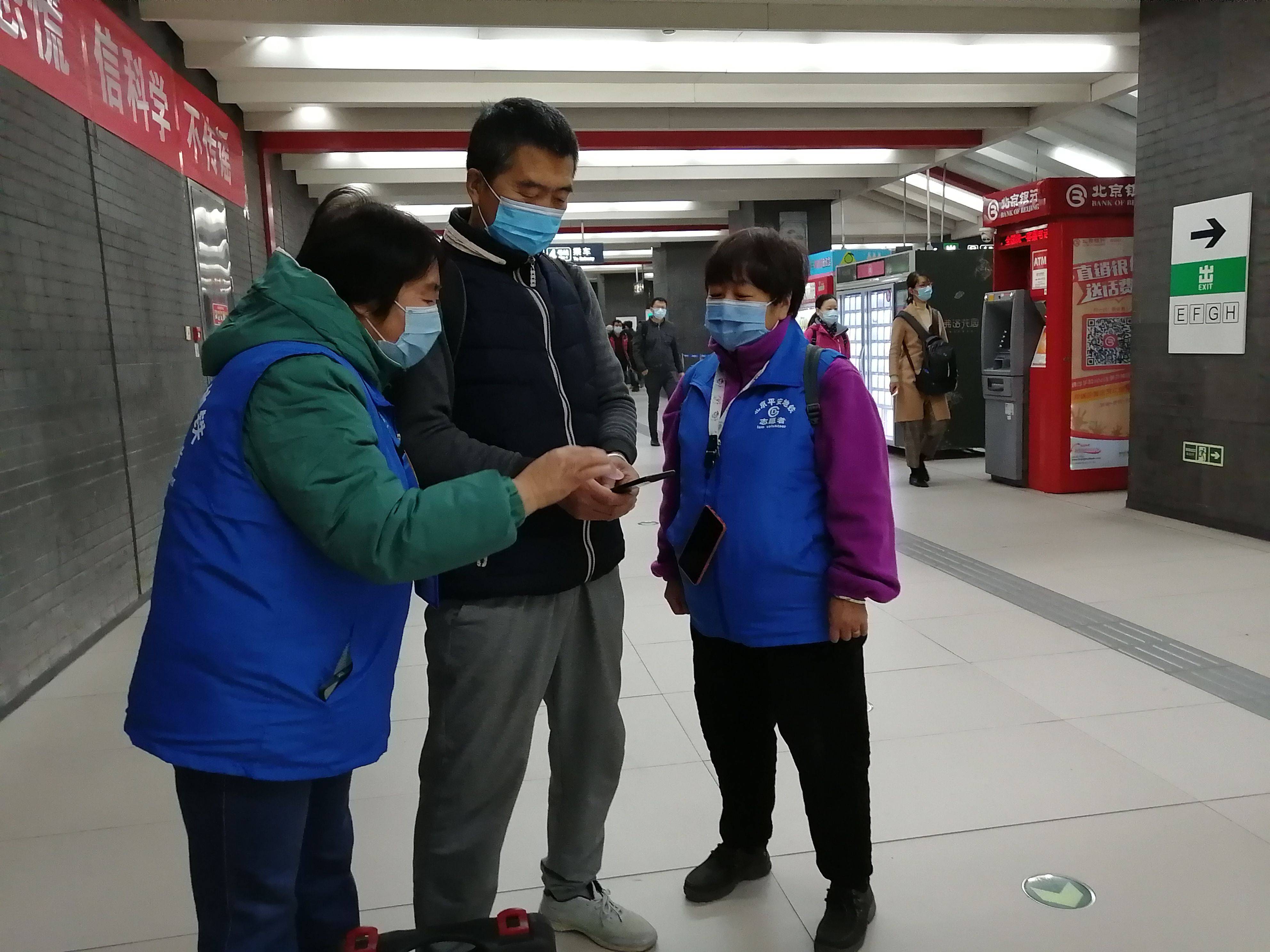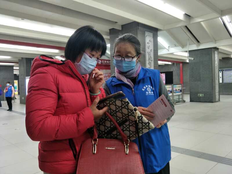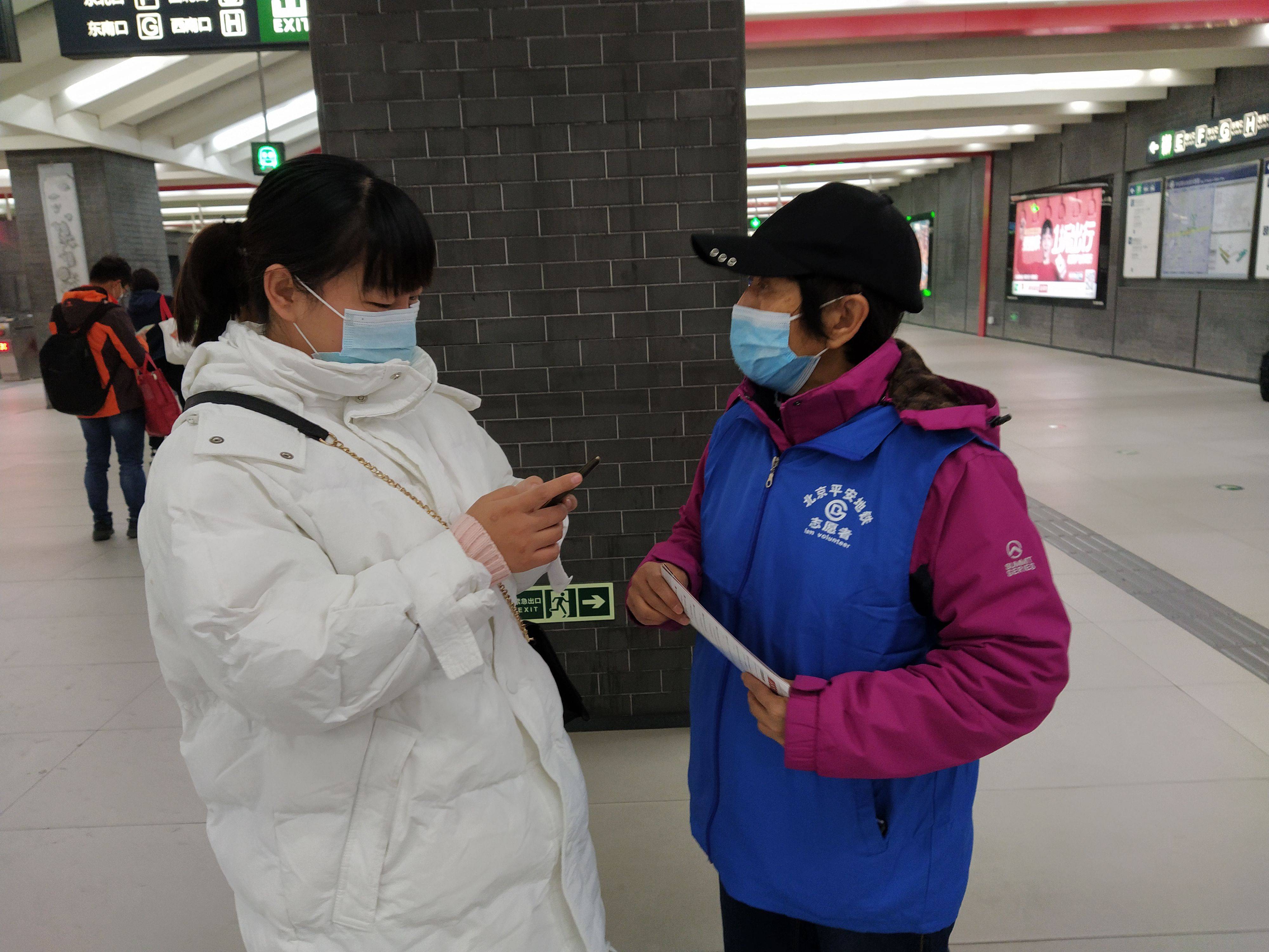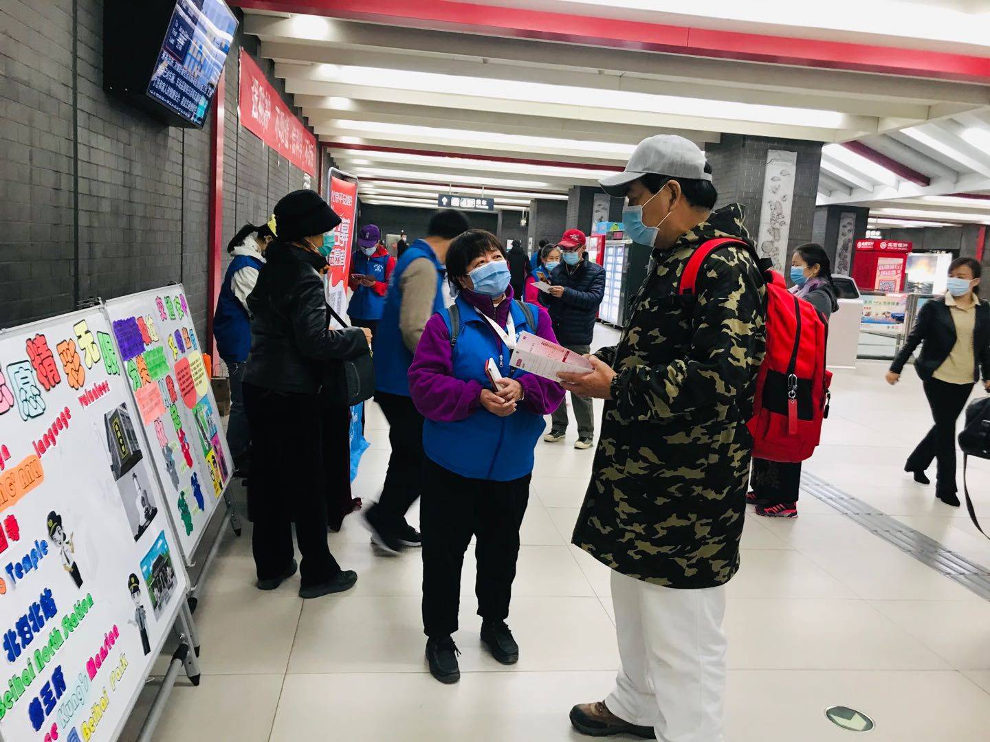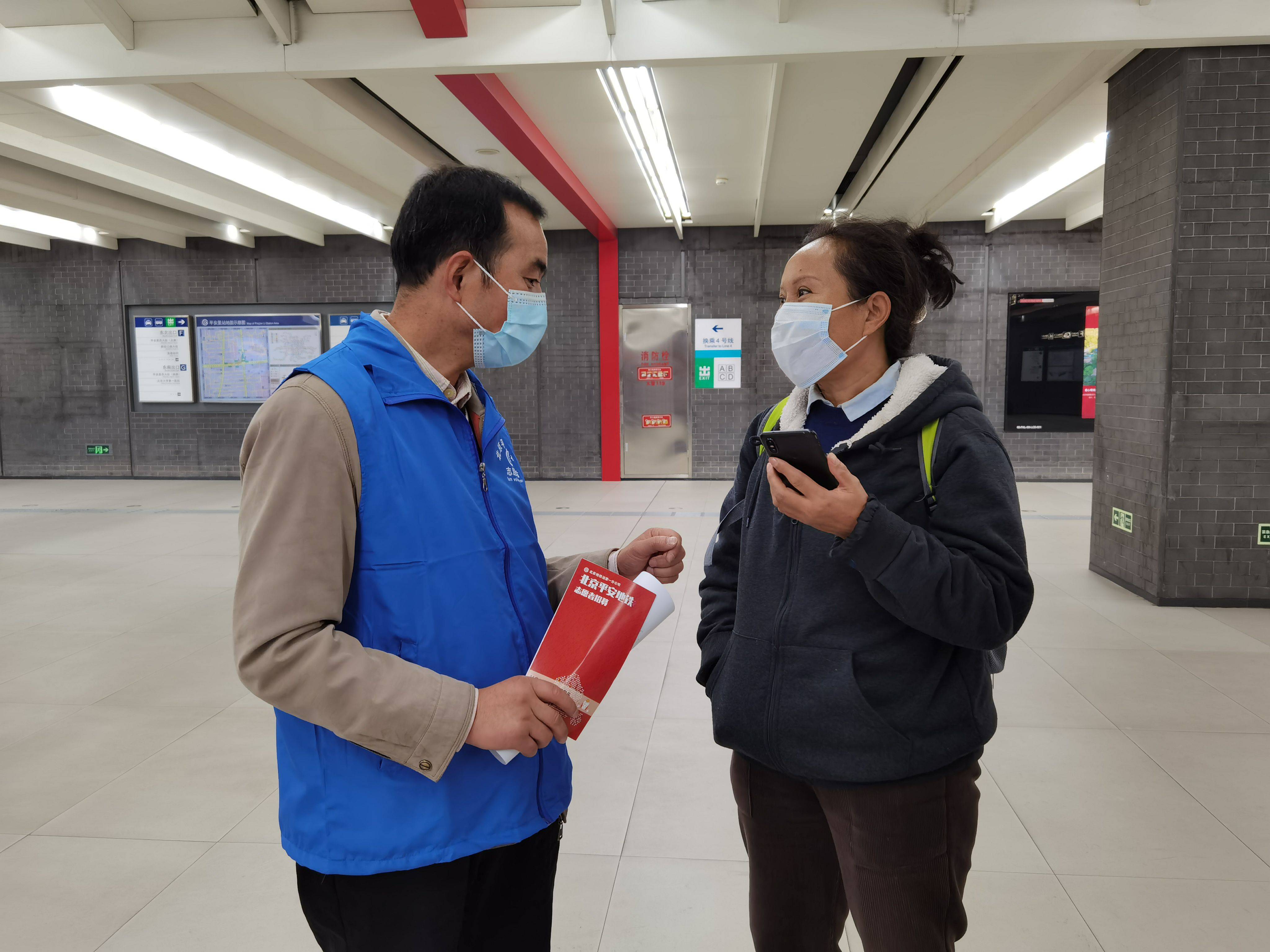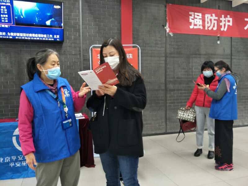为了守护这不易的幸福,总有一群人,在角落中默默保障乘客们的地铁乘车秩序安全。京徽志愿服务总队的志愿者来到了6号线平安里站,开展“文明出行--外语志愿精彩无限”主题志愿活动。站区工作人员带领志愿者们认真温习常用外语:Huguo Temple、Prince kung's Mansion……以便更好的服务乘客。在活动中,志愿者们尽职尽责——地铁进出口处,志愿者们协助安检处的工作人员,提醒等待安检的旅客在安检处排好队,检查是否在行李中携带违禁物品乘车,并在疫情期间特别提示乘客注意个人的防护工作,在进入地铁站前佩戴好口罩,对自己和他人的安全负责。在引导乘客有序进出站的同时,志愿者充分照顾到了“上班族”们赶时间的急切心理,一声声问候等礼貌的柔声细语,如同和煦的春风,使乘客们的紧绷的神经得到了舒缓和放松,让人们以最好的心情去面对全新一天的工作生活;地铁站内,一个个蓝色的身影穿梭在熙来攘往的人群之中,维护着乘车秩序,解决着乘客疑问。一次次奔走,一声声提醒、一份份热忱,当看到乘客的问题得到解决后露出的微笑,当听到乘客感谢我们的一声声谢谢和再见时,我们觉得一切都是值得的。