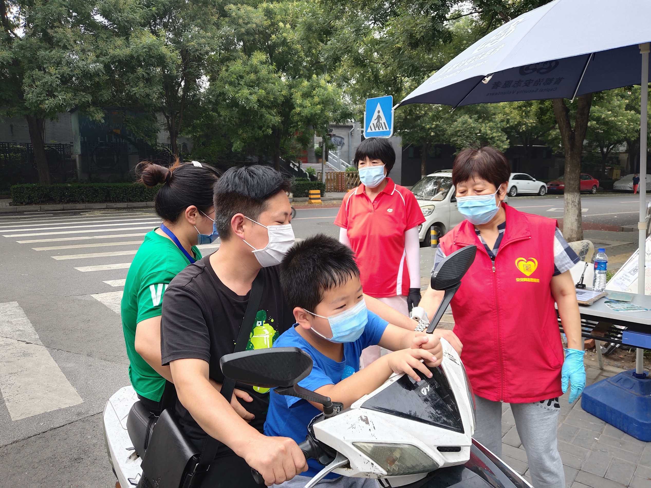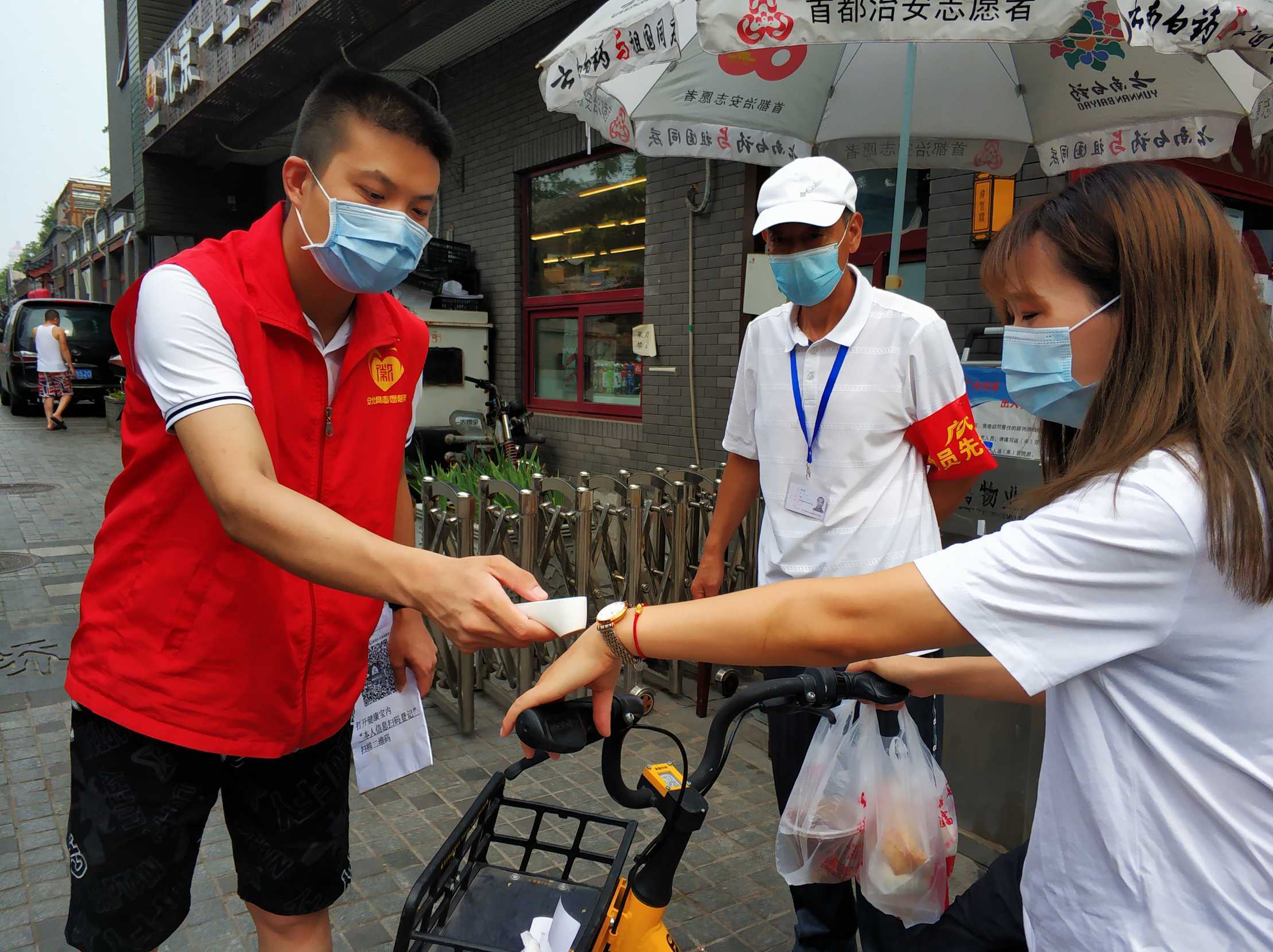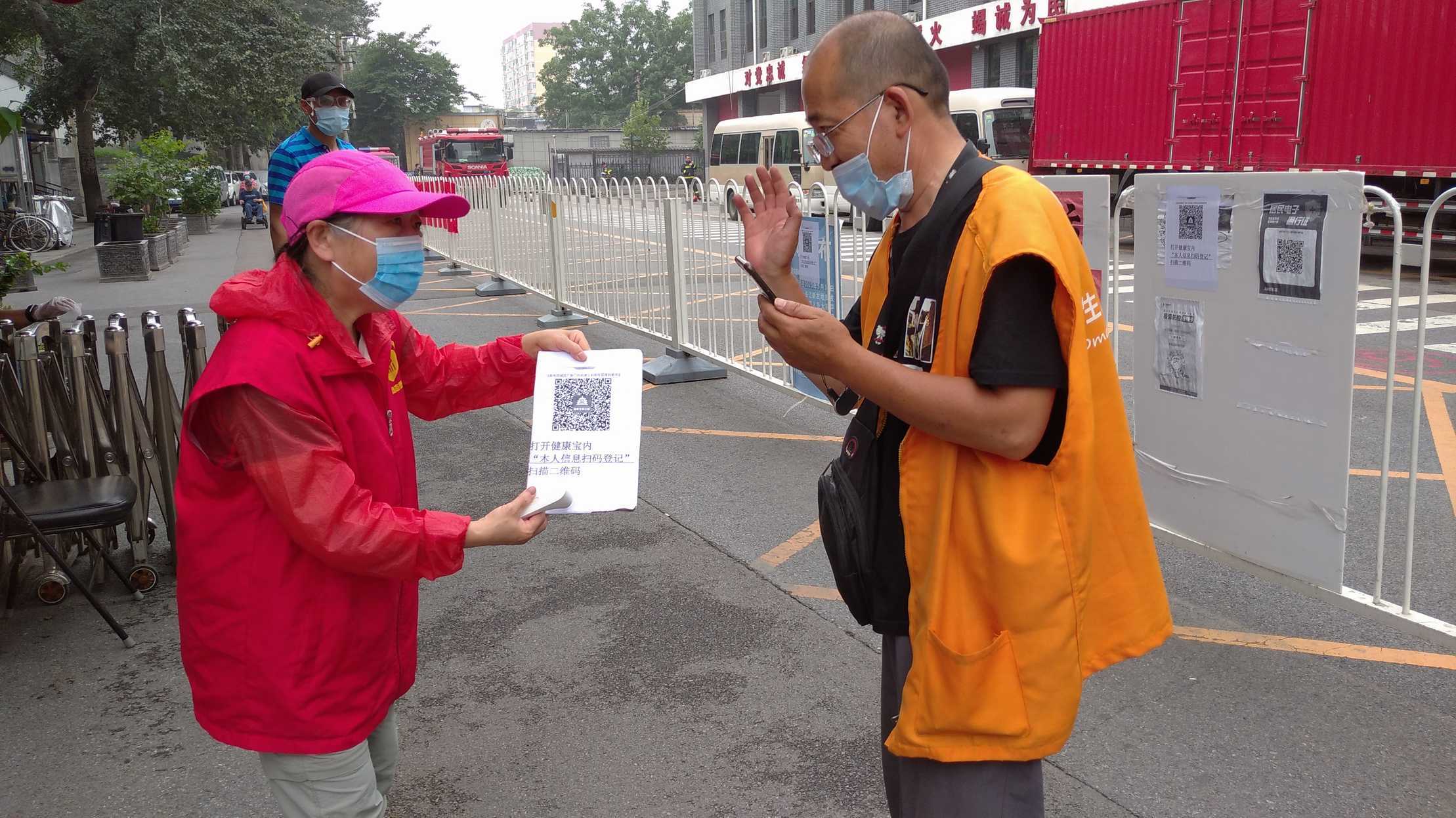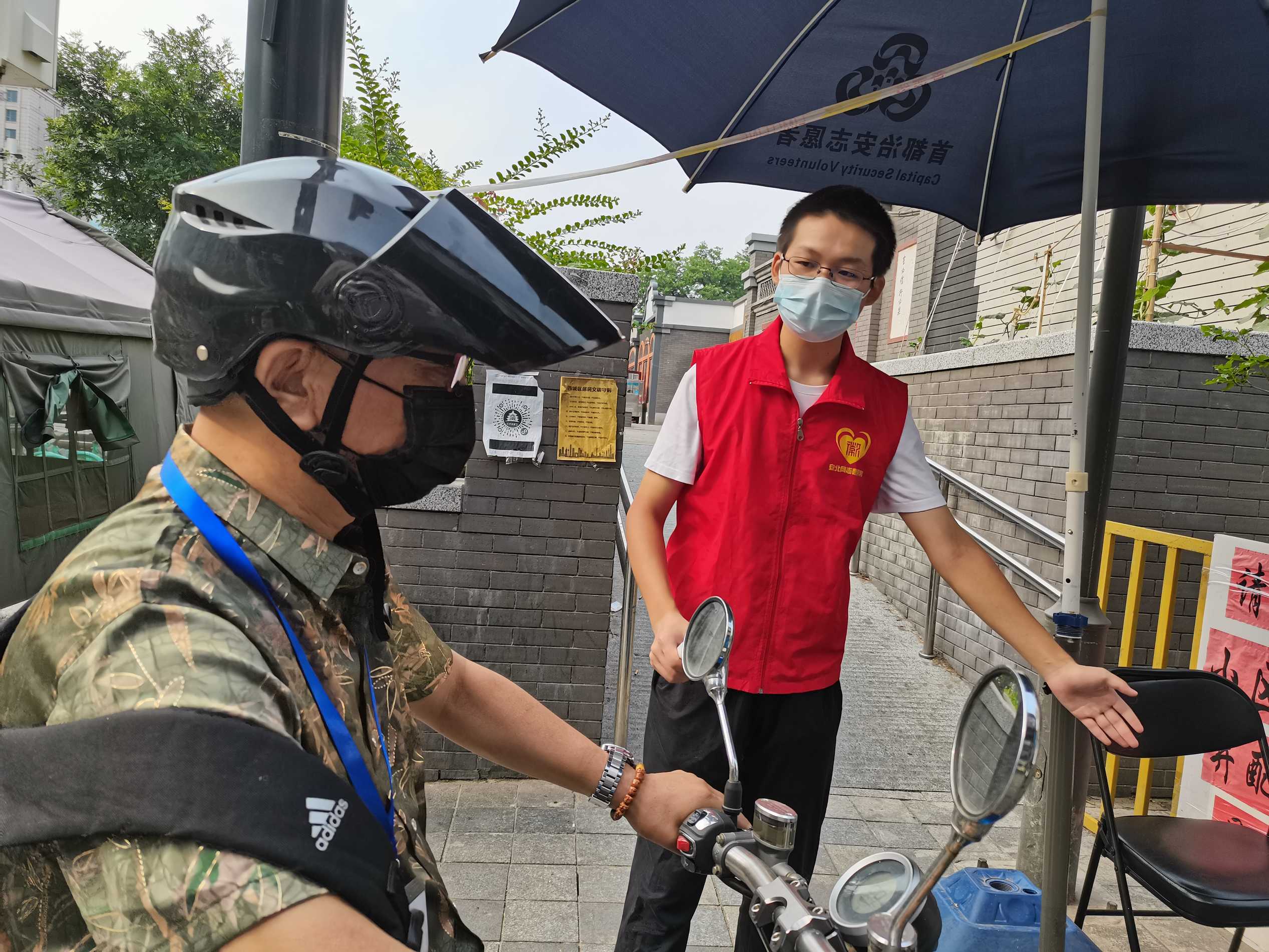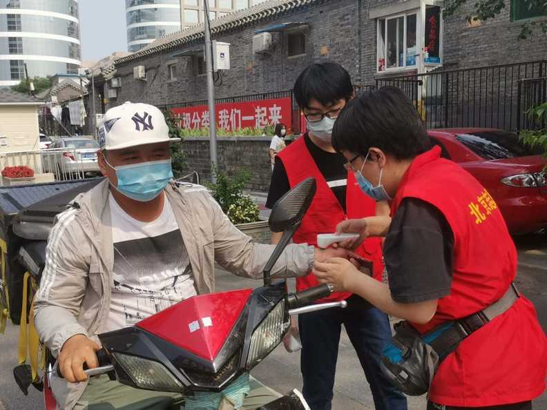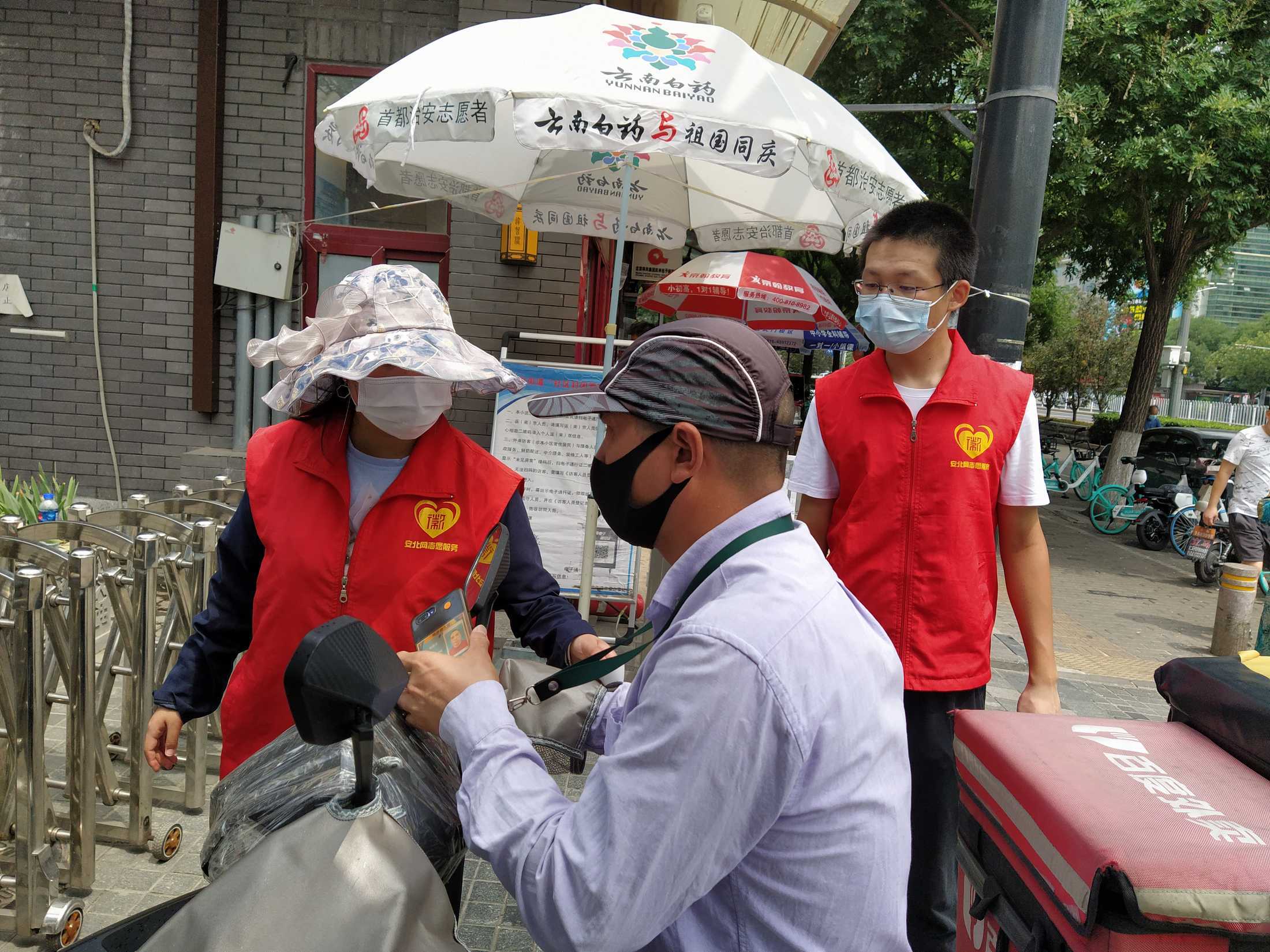 安北网志愿服务队作为2019年首都学雷锋志愿服务“首都最佳志愿服务组织”,积极响应西城共青团、西城区志联发出抗“疫”志愿者招募令的号召,迅速组织志愿者进入疫情防控战时状态,协助社区筑牢疫情防线。团队负责人马成朋与志愿者们从早上8点到晚上6点分别在卡口防疫一线值守,志愿者严格落实社区卡口的测温、查证、验码、登记等措施。对进出居民测量体温,查验社区居民出入证,对来访人员核验北京健康宝并进行个人信息扫码登记“未见异常”可通过状态,方可进入;引导来访人员正确使用北京健康宝信息登记;提醒居民对于前往中、高风险地区,或与确诊病例行程轨迹有密切交集的,请主动联系社区报备相关情况,并按规定执行相关防控措施等等,坚决遏制疫情扩散蔓延取得了非常好的成绩。他们有中学生、大学生、上班族、退休人员等,他们顶着炎热酷暑、风雨无阻,克服困难坚守居民的健康安全防线。今天上午,北京市卫健委通报,7月17日0时至24时,北京新增1例无症状感染者,连续12天无新增报告本地确诊病例。当前防控形势进一步趋稳向好,但是,要时刻保持警惕,坚持“外防输入、内防反弹”,夯实来之不易的防控成果。疫情防控人人都是第一责任人 !