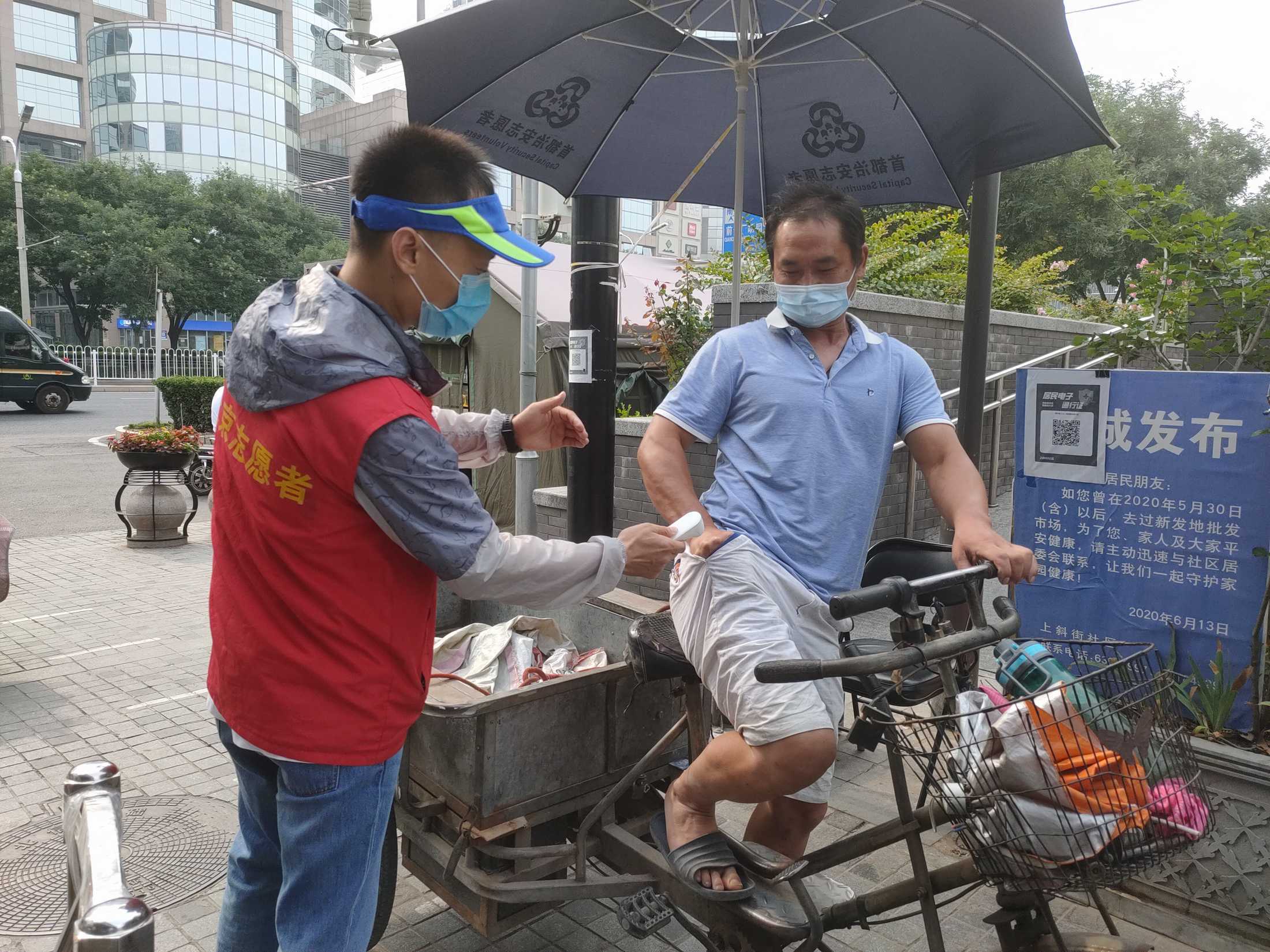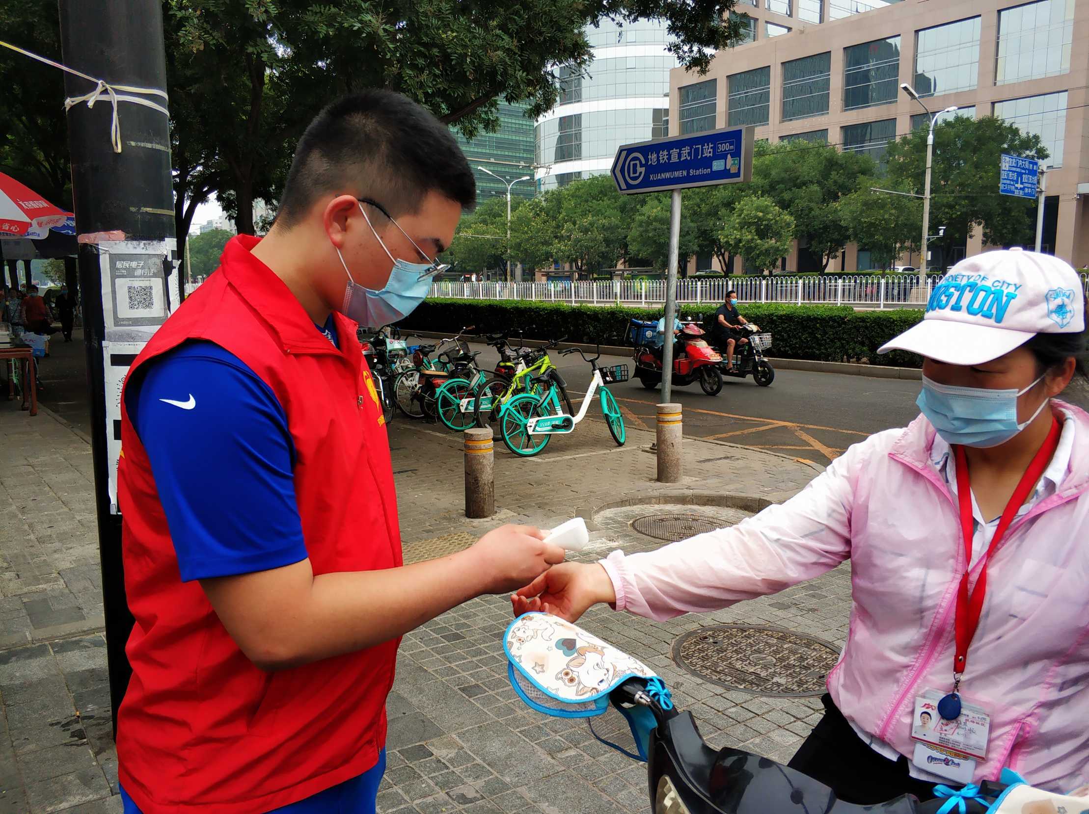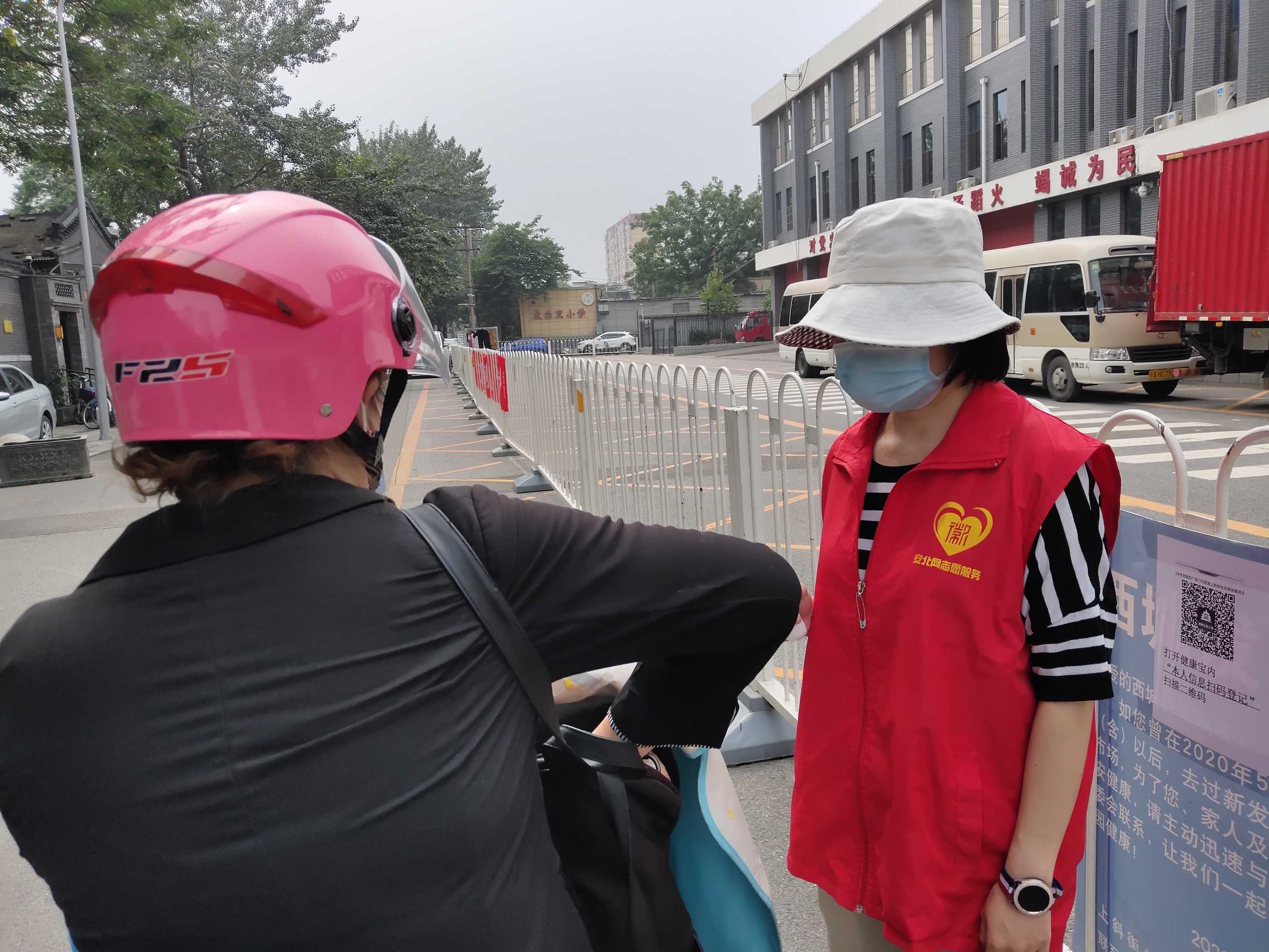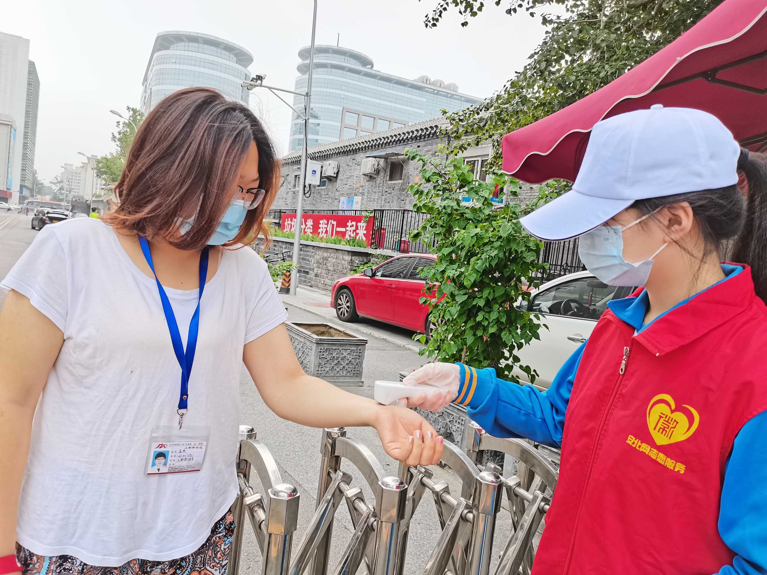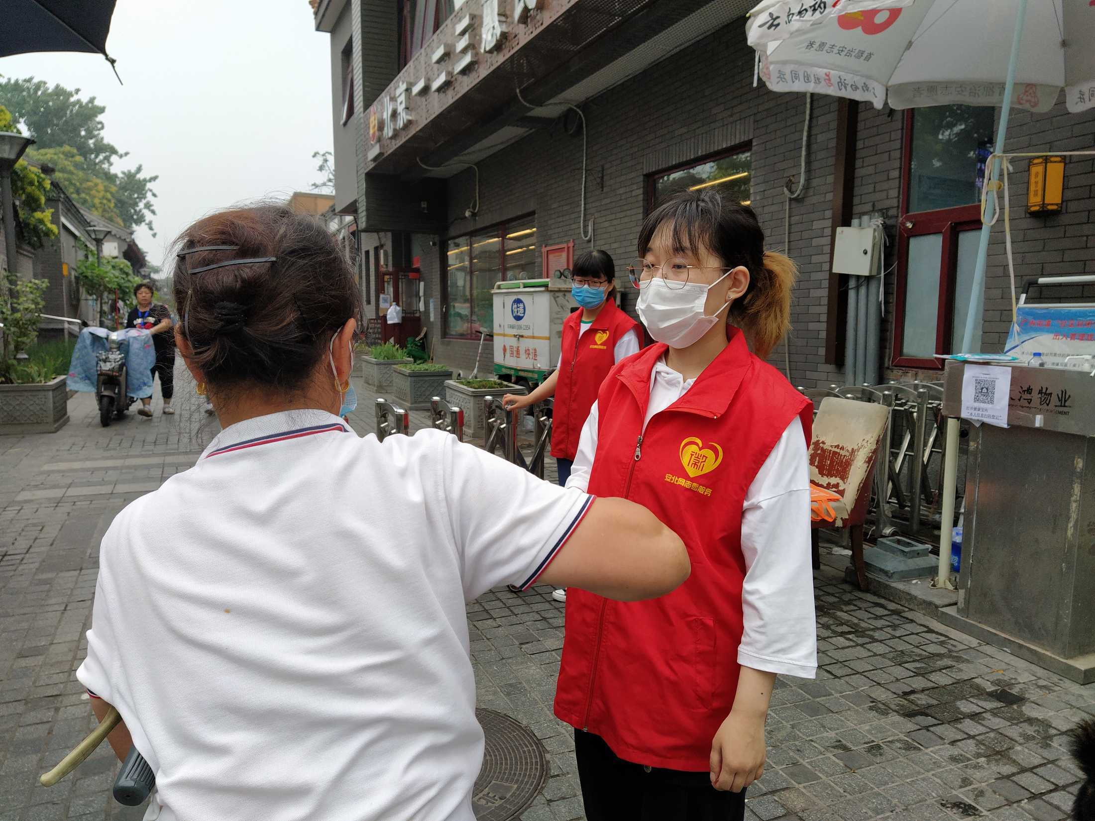 安北网志愿服务队作为2019年首都学雷锋志愿服务“首都最佳志愿服务组织”,积极响应西城共青团、西城区志联发出抗“疫”志愿者招募令的号召,迅速组织志愿者进入疫情防控战时状态,协助社区筑牢疫情防线。团队负责人马成朋与志愿者们从早上8点到晚上6点分别在卡口防疫一线值守,志愿者严格落实社区卡口的测温、查证、验码、登记等措施。对进出居民测量体温,查验社区居民出入证,对来访人员核验北京健康宝并进行个人信息扫码登记“未见异常”可通过状态,方可进入;引导来访人员正确使用北京健康宝信息登记;提醒居民对于前往中、高风险地区,或与确诊病例行程轨迹有密切交集的,请主动联系社区报备相关情况,并按规定执行相关防控措施等等,坚决遏制疫情扩散蔓延取得了非常好的成绩。他们有中学生、大学生、上班族、退休人员等,他们顶着炎热酷暑、风雨无阻,克服困难坚守居民的健康安全防线。今天上午,北京市卫健委通报,7月17日0时至24时,北京新增1例无症状感染者,连续12天无新增报告本地确诊病例。当前防控形势进一步趋稳向好,但是,要时刻保持警惕,坚持“外防输入、内防反弹”,夯实来之不易的防控成果。疫情防控人人都是第一责任人 !