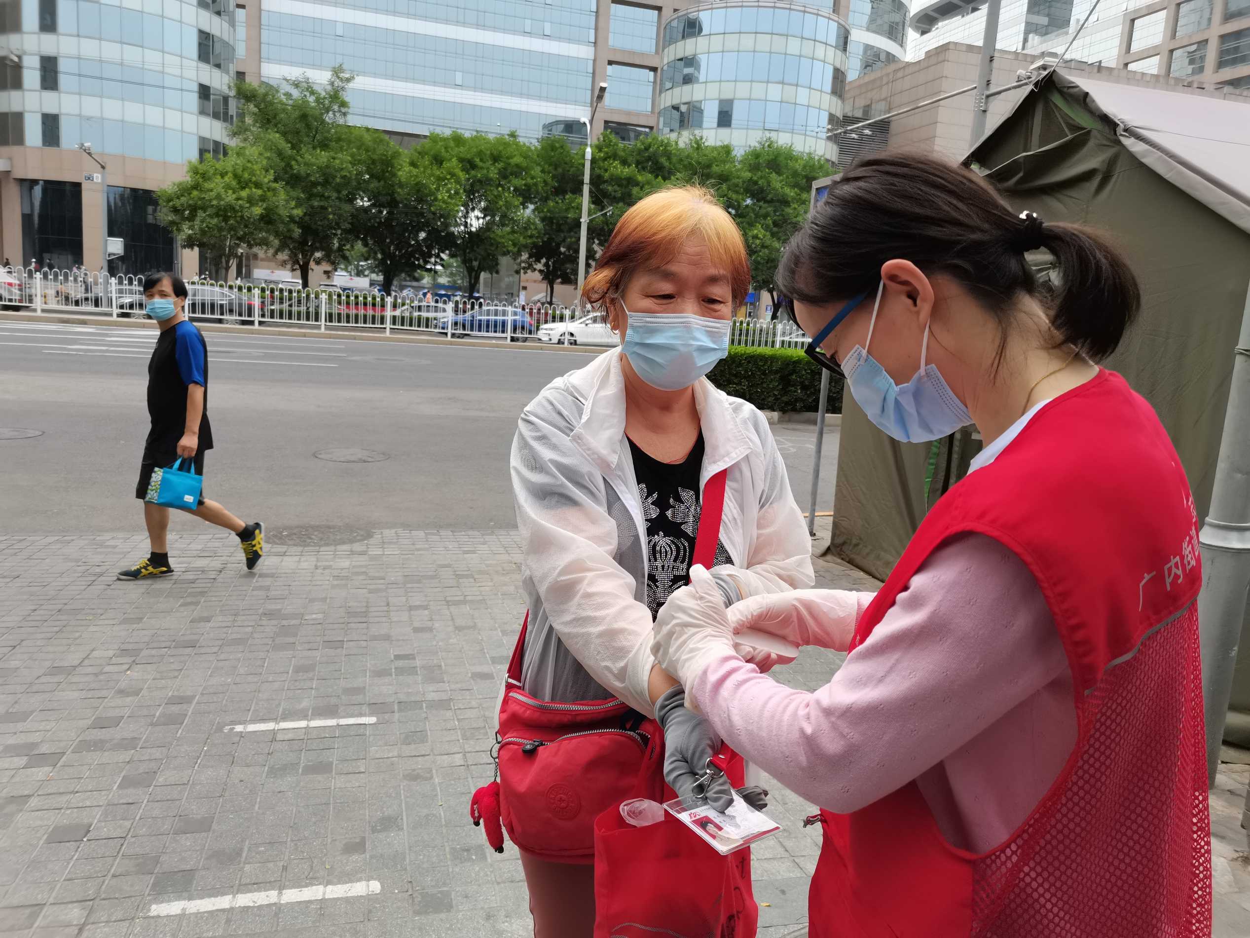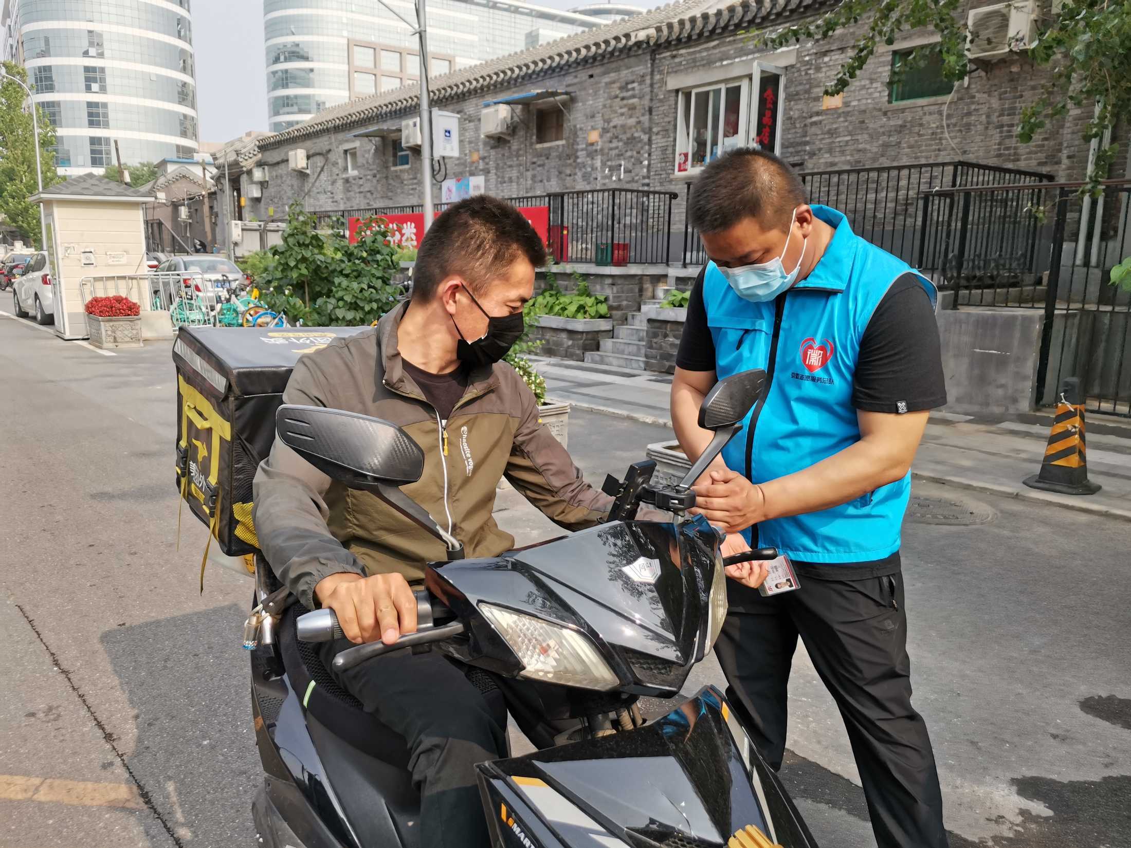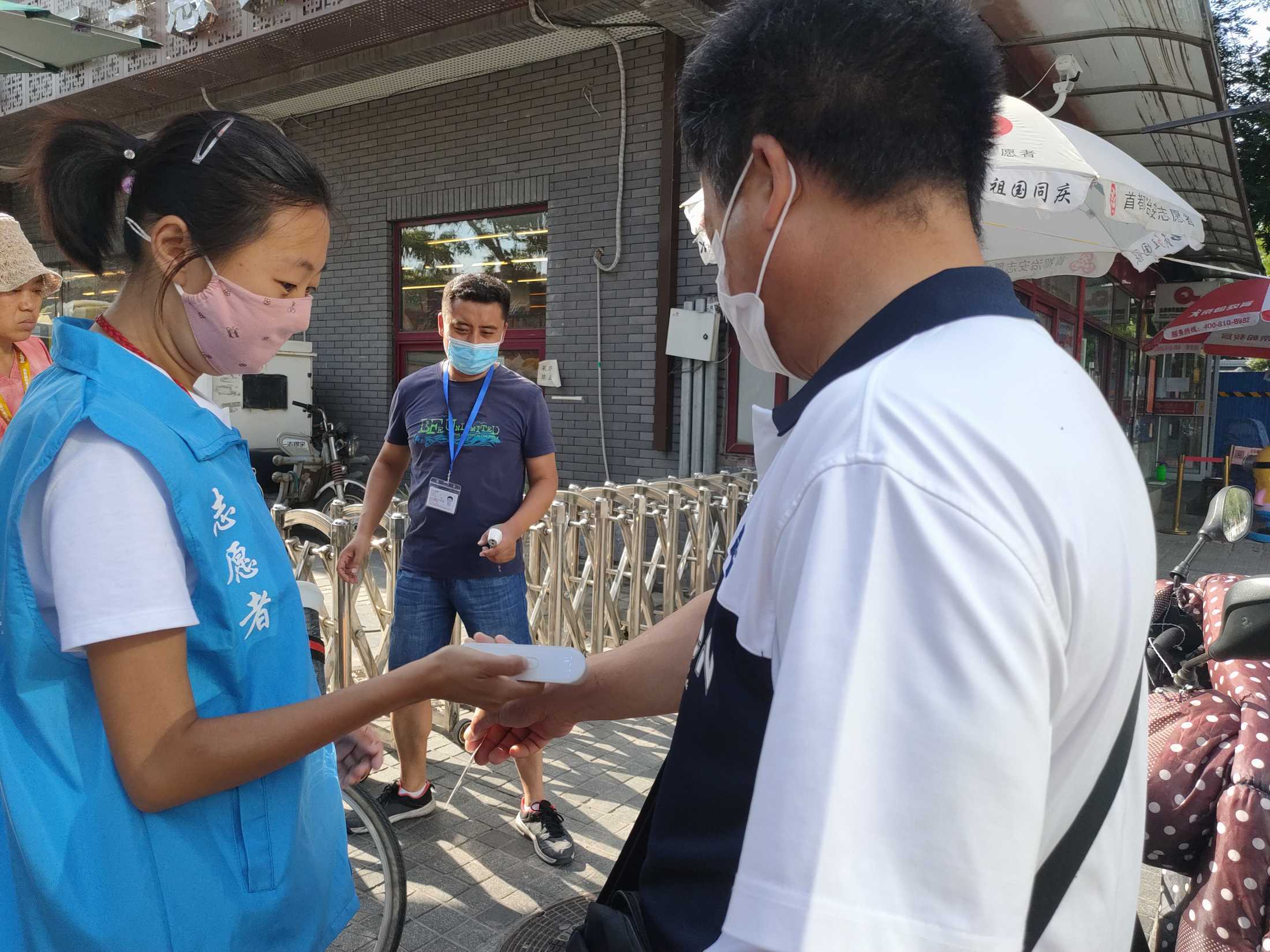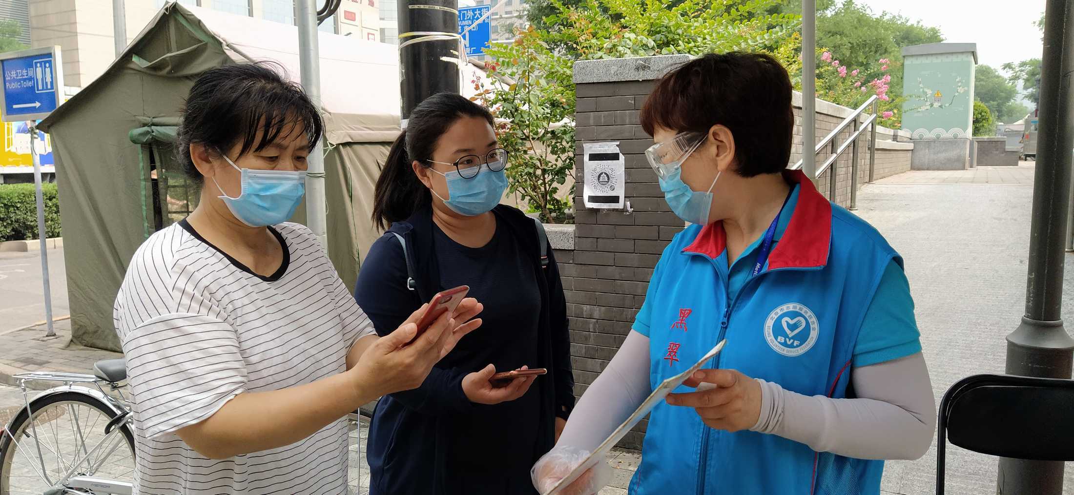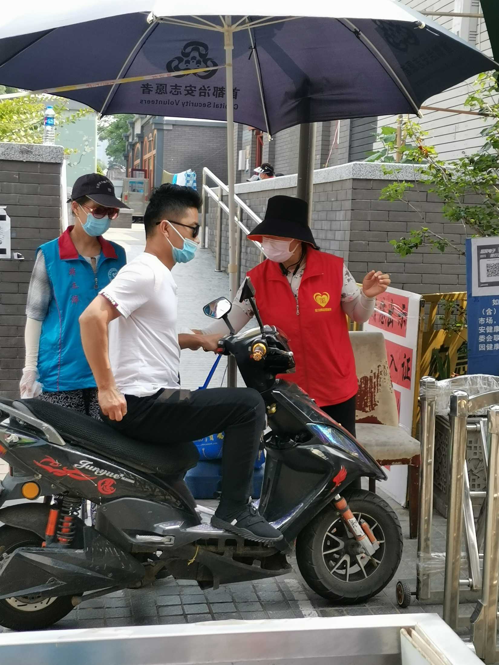 安北网志愿服务队作为2019年首都学雷锋志愿服务“首都最佳志愿服务组织”,积极响应西城共青团、西城区志联发出抗“疫”志愿者招募令的号召,迅速组织志愿者进入疫情防控战时状态,协助社区筑牢疫情防线。团队负责人马成朋与志愿者们从早上8点到晚上6点分别在卡口防疫一线值守,志愿者严格落实社区卡口的测温、查证、验码、登记等措施。对进出居民测量体温,查验社区居民出入证,对来访人员核验北京健康宝并进行个人信息扫码登记“未见异常”可通过状态,方可进入;引导来访人员正确使用北京健康宝信息登记;提醒居民对于前往中、高风险地区,或与确诊病例行程轨迹有密切交集的,请主动联系社区报备相关情况,并按规定执行相关防控措施等等,坚决遏制疫情扩散蔓延取得了非常好的成绩。他们有中学生、大学生、上班族、退休人员等,他们顶着炎热酷暑、风雨无阻,克服困难坚守居民的健康安全防线。今天上午,北京市卫健委通报,7月17日0时至24时,北京新增1例无症状感染者,连续12天无新增报告本地确诊病例。当前防控形势进一步趋稳向好,但是,要时刻保持警惕,坚持“外防输入、内防反弹”,夯实来之不易的防控成果。疫情防控人人都是第一责任人 !