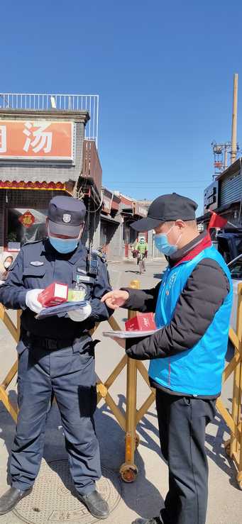 3月13日上午,京徽志愿服务总队慰问在抗疫一线的志愿者。队长张仁俊来到支援卡点之一大栅栏街道石头社区,为他们送上慰问品,勉励大家坚守岗位,严格做好疫情防控,树立信心并叮嘱志愿者开展好工作的同时做好自身防护劳逸结合,为他们放弃个人休息时间主动参与疫情防控敢于担当的志愿精神给予高度赞扬,鼓励大家齐心协力打赢疫情阻击战。