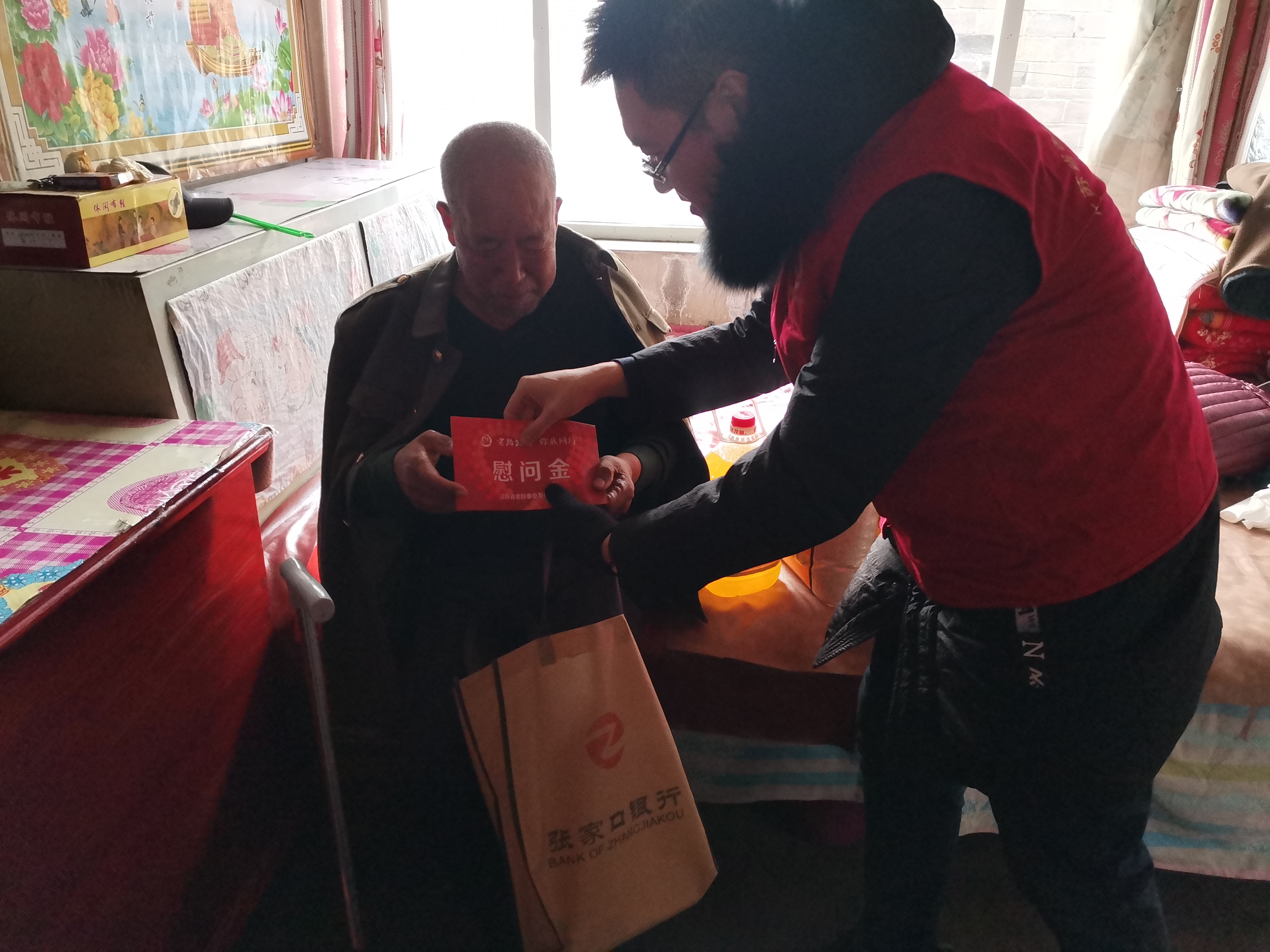 2020年11月28日,由江苏老龄事业发展基金会支持的农村空巢老人救助项目,本年度第4轮执行——“空巢救助 爱撒河北”活动在蔚县曹疃村项目点开展。蔚县县委组织部、民政局、南留庄镇相关领导,村两委干部、河北中烟张家口卷烟厂驻村干部参加了活动。