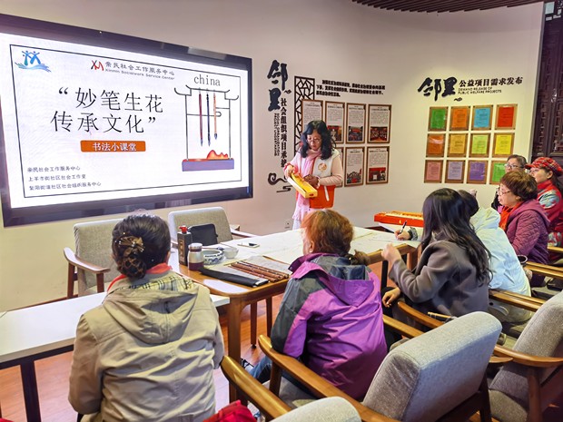 书法是中国优秀传统文化,它对于培养人的道德、身心、智能素质及良好的学习生活习惯,个性塑造及审美能力有着非常重要的作用。为进一步弘扬中华书法艺术,为社区居民提供多种多样的娱乐形式,提升社区居民素养,亲民社会工作服务中心组织开展了“妙笔生花,传承文化”书法小课堂活动。