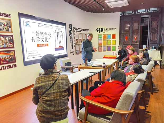 本次授课由社区学院书法老师金老师教授。活动伊始,社工先介绍大家相互认识,现场气氛在互动中热烈了起来。活动中,老师告诉学员们,在博大精深的历史文化长河中,书法被称为中国文化的核心,中国书法艺术反映了人的精神、气质、学识和修养,展现了中国的传统文化。