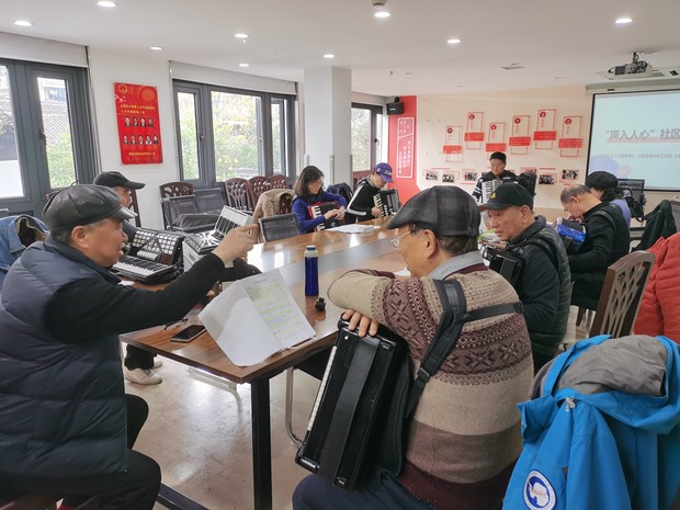 为了提升红巷神采飞扬手风琴队的演出水平,搭建与辖区居民的交流平台,杭州市上城区亲民社会工作服务中心在红巷生活馆开展了“声入人心”社区共融活动。