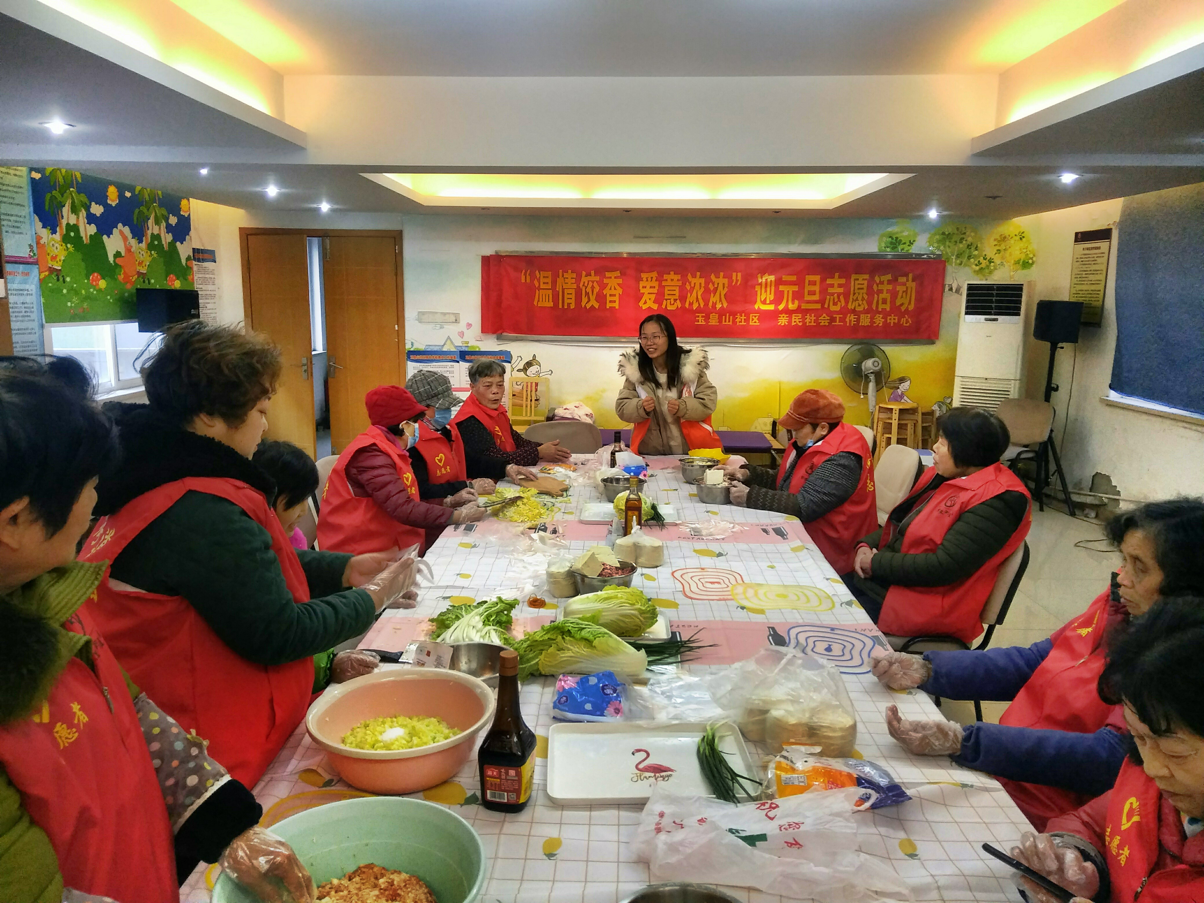 为迎接元旦的到来,激发志愿服务热情,营造和谐互助的邻里氛围,2020年12月22日下午,亲民社会工作服务中心联合玉皇山社区为居民开展了“温情饺香,爱意浓浓”迎元旦志愿活动。