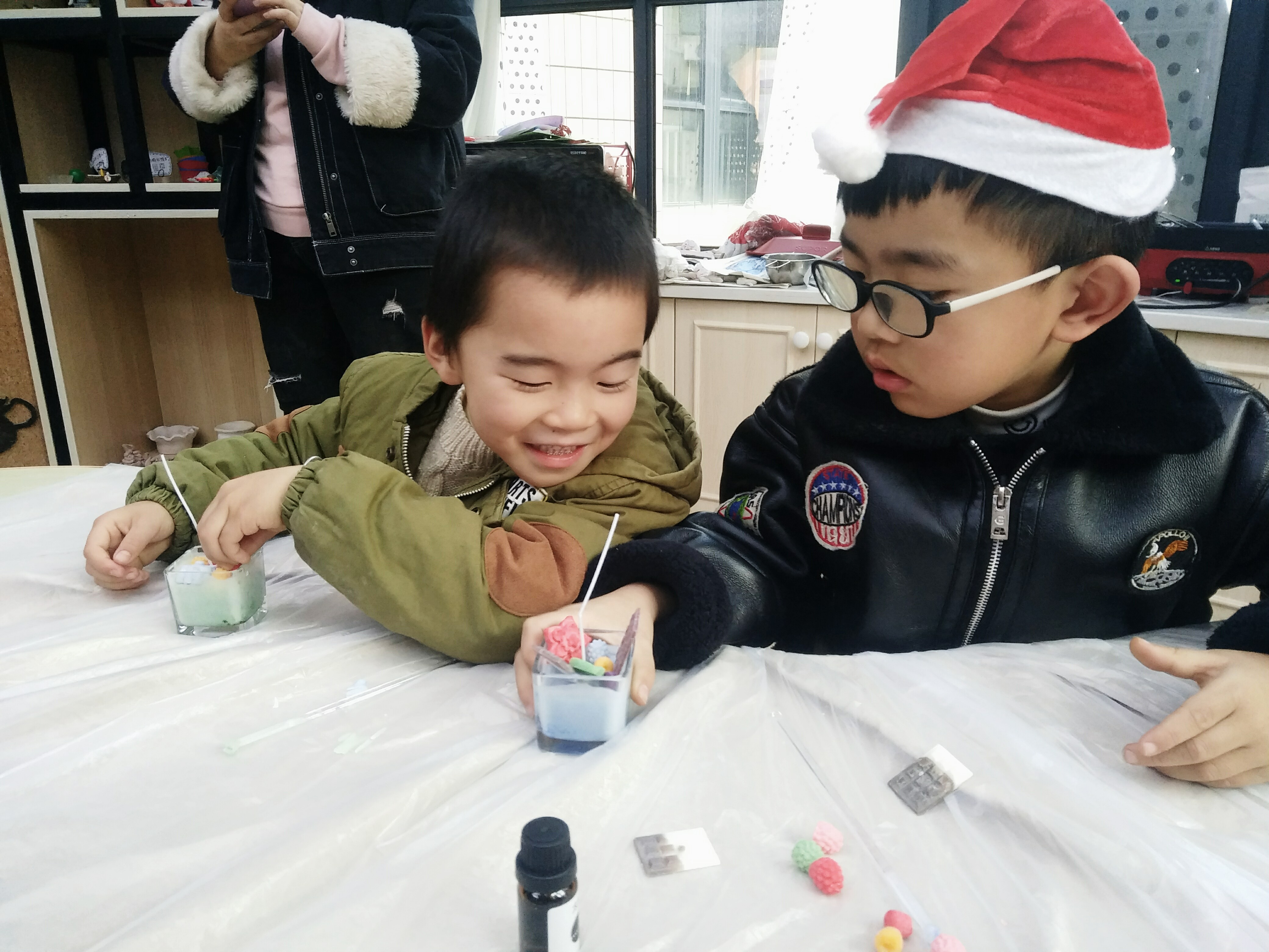 12月24日下午,此次活动准时开始,伴随着孩子们的欢笑和赞叹声,美好社工首先向大家详细讲解了活动操作中需注意的安全事项。接着由社工为大家分发已准备好的制作原材料,大家跟随着老师的讲解进行操作,在志愿者们的帮助下准备好烛心,向杯内倒入化好的蜡油,随后倒入香精和色粉,在蜡油半凝状态时开始放入装饰品,最后耐心等待蜡油凝固。在等待蜡烛凝固时,孩子们还迫不及待地分享了自己的创意和收获,希望点亮蜡烛带来的微微光芒,能为孩子们的童年带去一抹温暖和甜美。