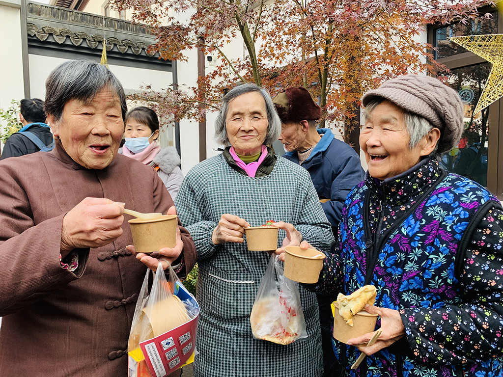 第二站:杭之味,暖时光。经过了第一站的美景,下一站我们来到了美食区,往里走就是由南星街道的八个社区的社工、志愿者开设的美食小铺,组成了杭州传统美食长廊:猫耳朵、西湖藕粉、龙井茶酥、萝卜丝饼、素烧鹅.......居民们自由进行美食体验,交流感情,留住传统的味道,更拉近了邻里之间、社工与居民之间的感情。