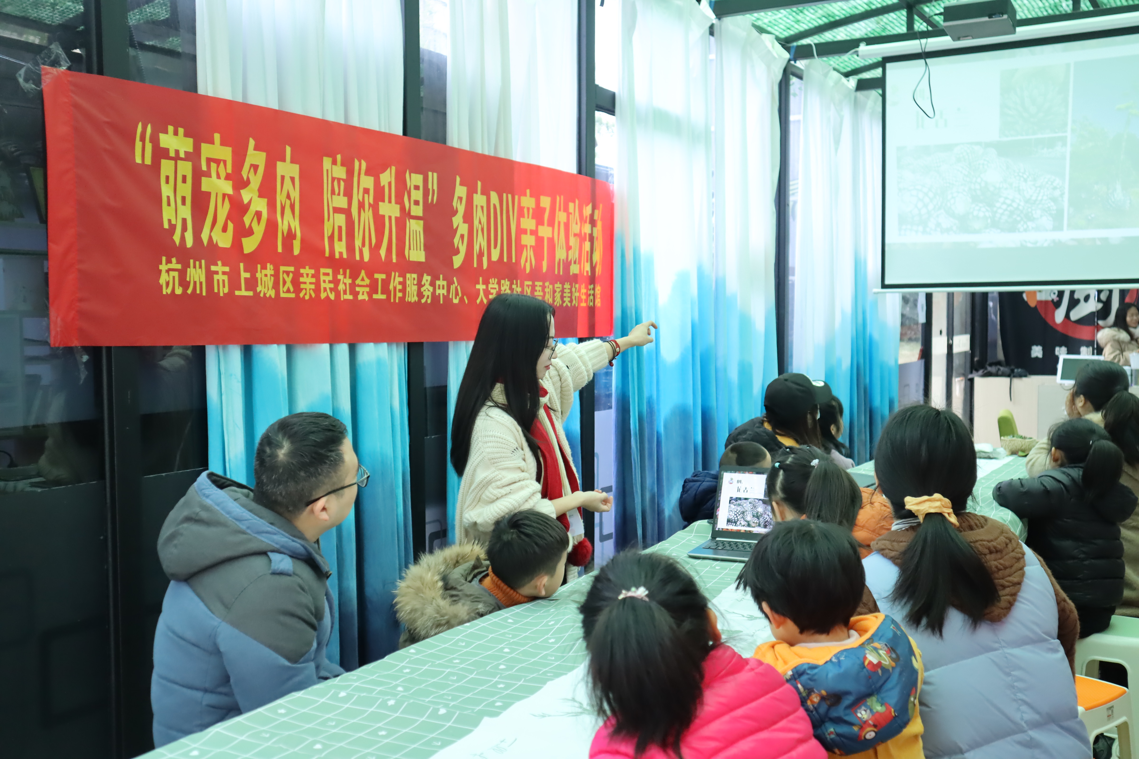 为激发小朋友们对多肉世界的兴趣,提升社区亲子家庭的协作能力,营造和谐共融的邻里氛围,2020年12月26日上午,亲民社会工作服务中心联合吾和家美好生活馆开展了“萌宠多肉,陪你升温”多肉DIY亲子体验活动。