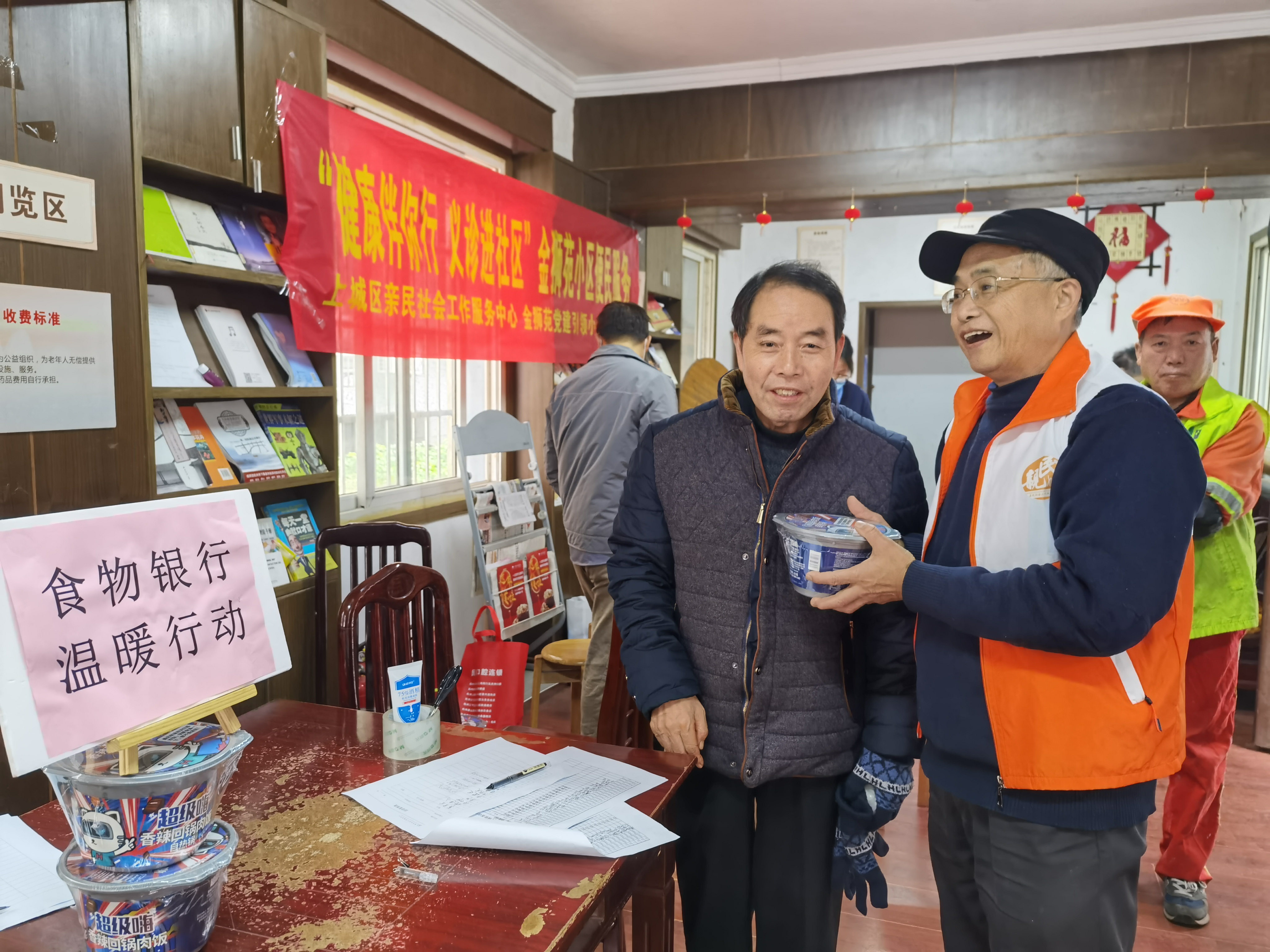 亲民社工、党员和居民志愿者们早早来到金狮苑老年活动中心做好准备。来参加活动的居民络绎不绝,志愿者们穿着热情洋溢地为社区居民们介绍服务内容:量血压、测血糖、牙齿健康检查、食物银行温暖行动等。现场的义诊医护人员一边为居民们检查,一边现场讲解高血压等各项健康养护知识,受到了居民们的喜爱和好评;食物银行摊位前,大家用实际行动体现了食物环保普享的理念,既帮助到了有需要的家庭,又实现了食物的零浪费。居民们表示在家门口就能享受到各种实实在在的服务真是太赞了!