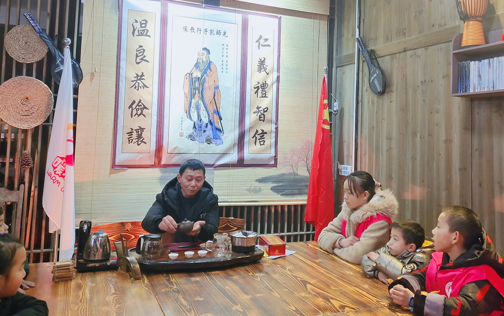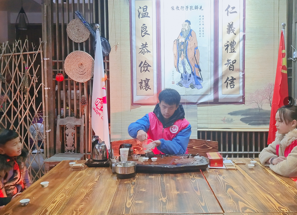 中国是文明古国,礼仪之邦。茶文化也是博大精深,历史悠久。青少年是祖国的未来,也是家庭的未来。对于孩子,我们总是寄予厚望,在培养孩子学习知识的同时,素质和道德教育也不容忽视。为传承优秀茶文化,让青少年在学习茶艺的过程中接受传统文化的熏陶,逐渐领悟我们中国的茶道精神。2021年1月2日,新晃雷锋青少年驿站、同心公益新晃服务中心开展了“品茶香、学茶道”活动。为孩子们带来了一场充满书韵茶香的茶文化公益课堂。