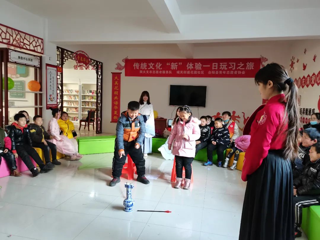 为了让青少年在趣味玩习中了解国学,热爱国学,与有志于弘扬国学的青少年一起,传播中华优秀传统文化。2021年1月1日,陕大支农志愿者服务队联合城关街道花园社区、合阳县青年志愿者协会在花园社区志愿服务基地举办“传统文化‘新’体验一日玩习之旅”活动。30组亲子家庭共聚一堂,交流学习。活动由陕大支农志愿者服务队邢颖茹老师主持。