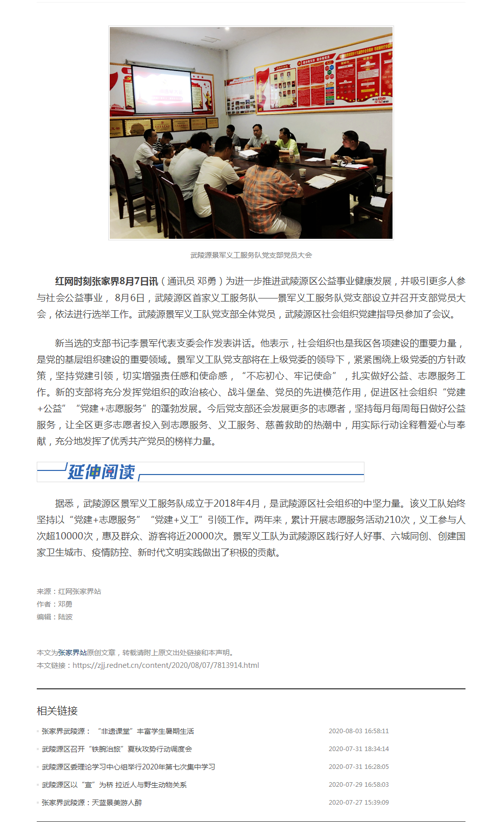武陵源区首家义工服务队有了党支部