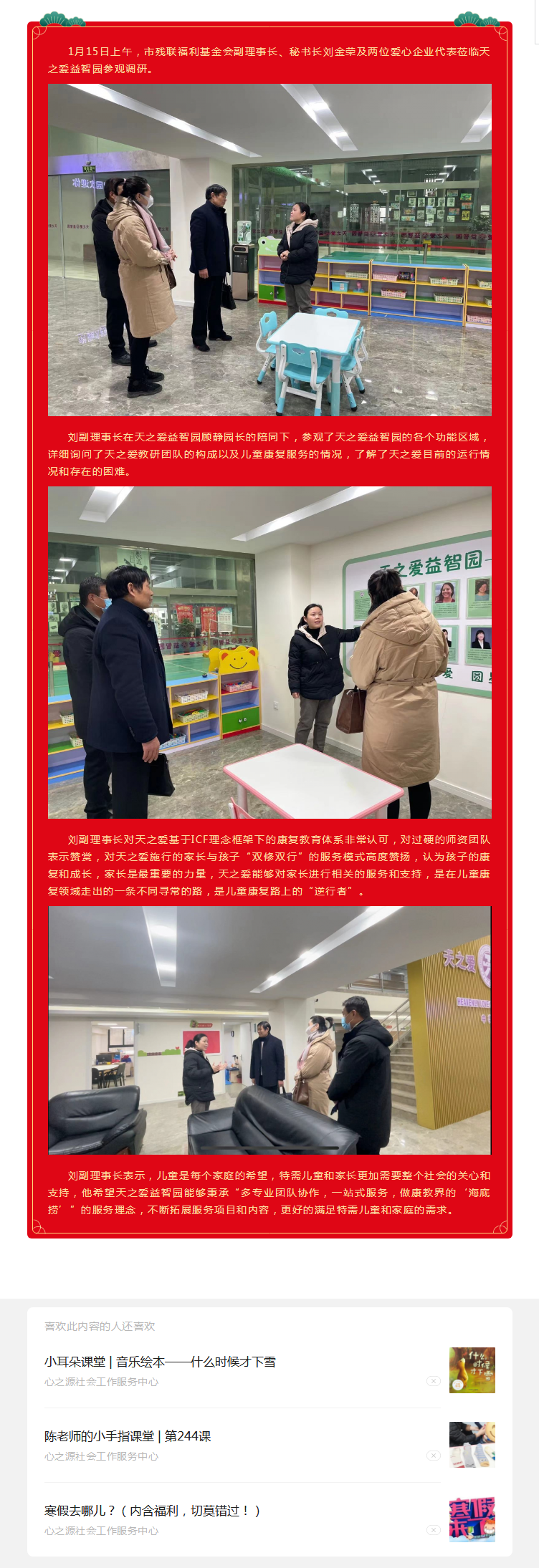 市残联福利基金会副理事长、秘书长刘金荣一行莅临天之爱益智园参观调研