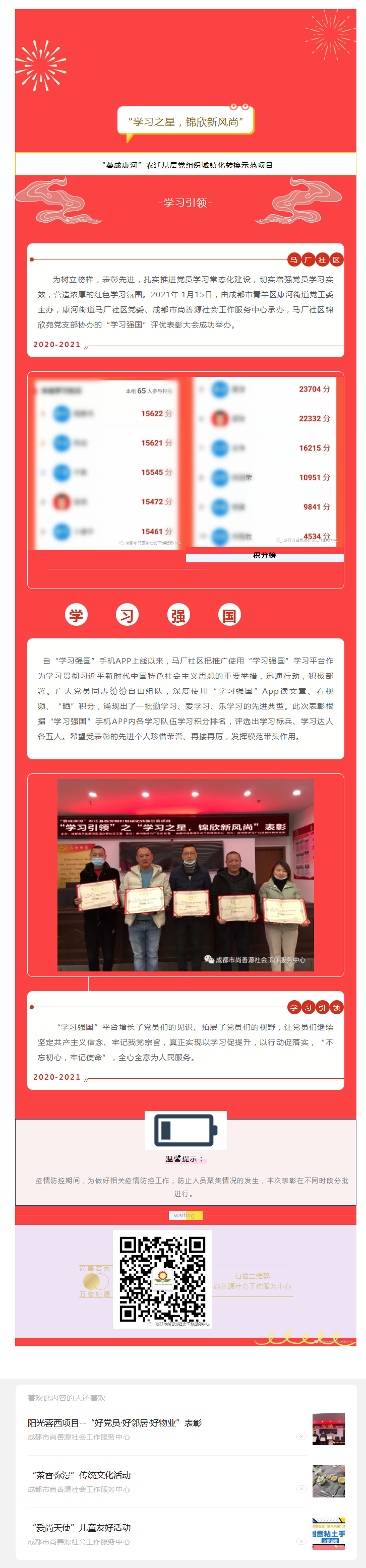 “蓉成康河”项目--“学习引领”之“学习之星,锦欣新风尚”表彰